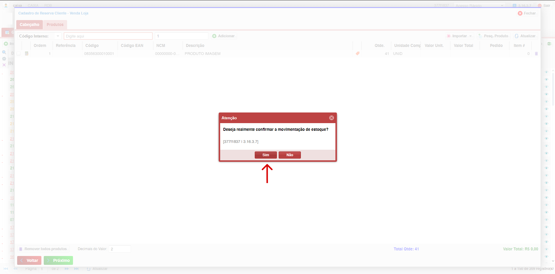 - Confirme a movimentação de estoque na tela exibida.