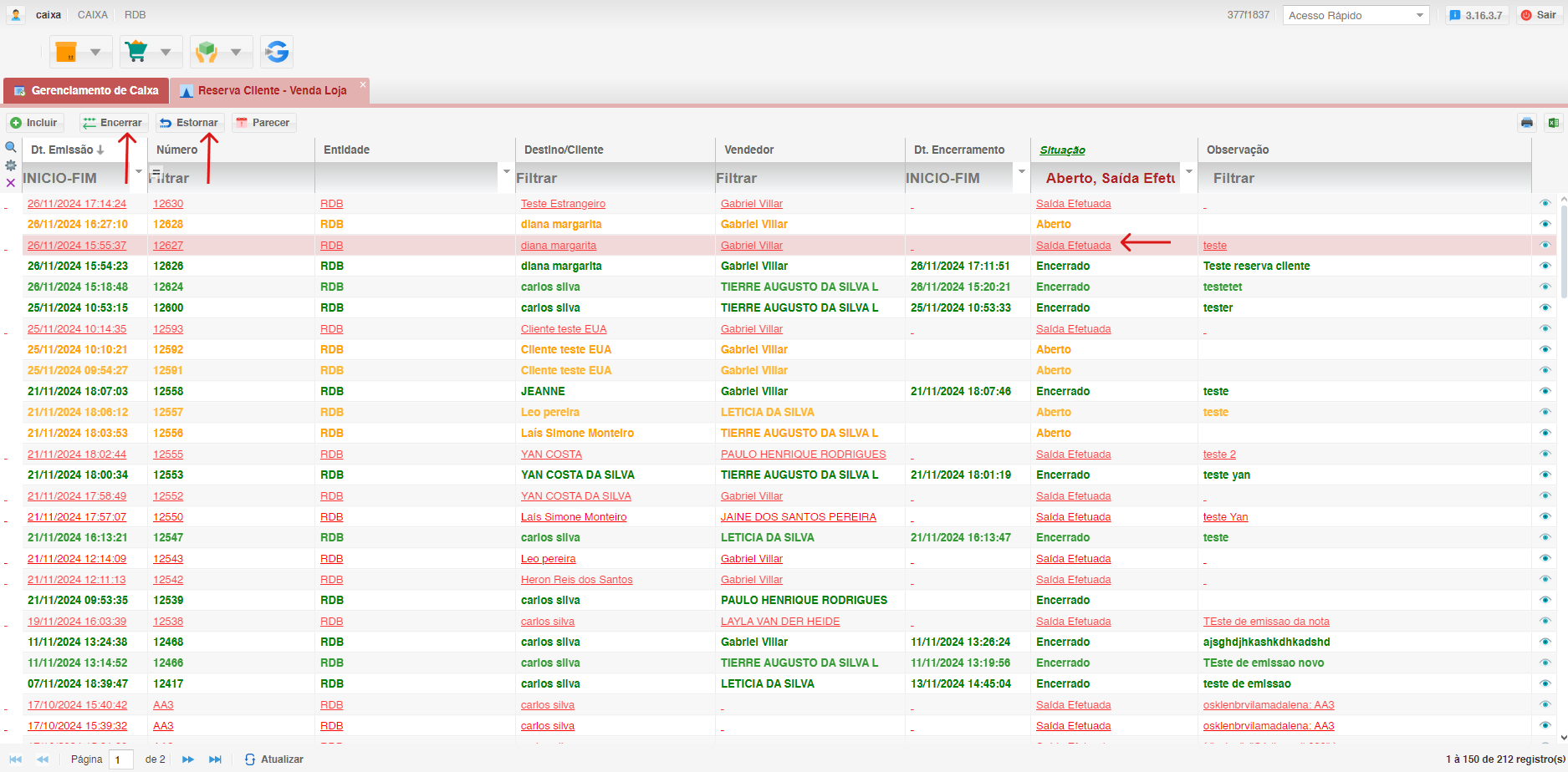 - Encerrar: Finaliza a reserva definitivamente, mudando o estado para "Encerrado".