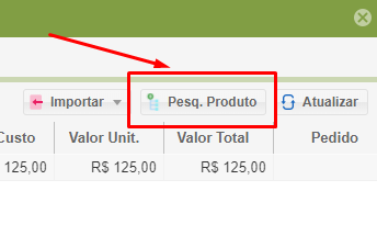 • Use a opção Pesq. Produto para filtrar e adicionar um volume maior de produtos de uma só vez.