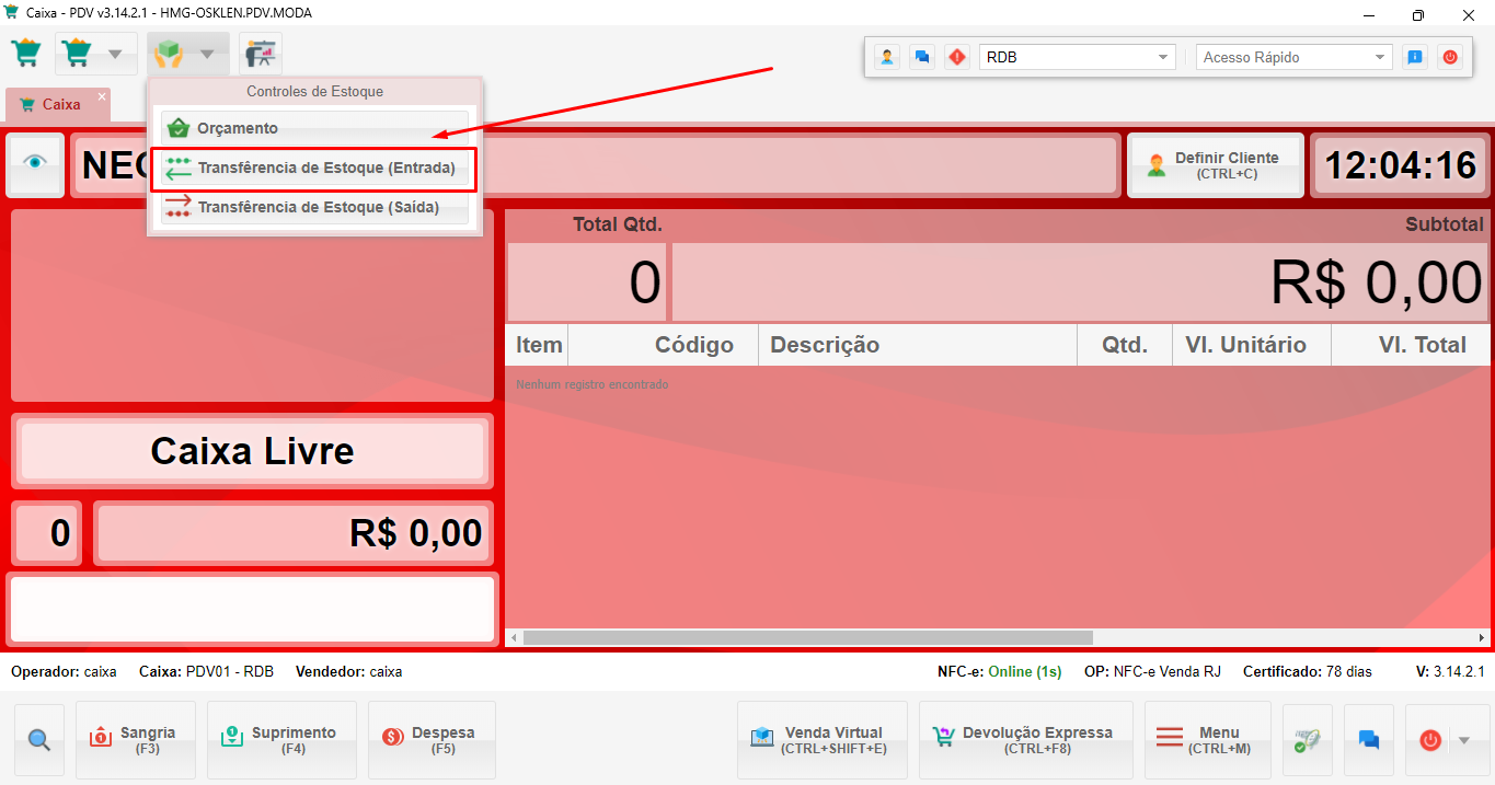 • Transferência de Estoque (Entrada): Utilizada quando a mercadoria vai chegar à sua loja