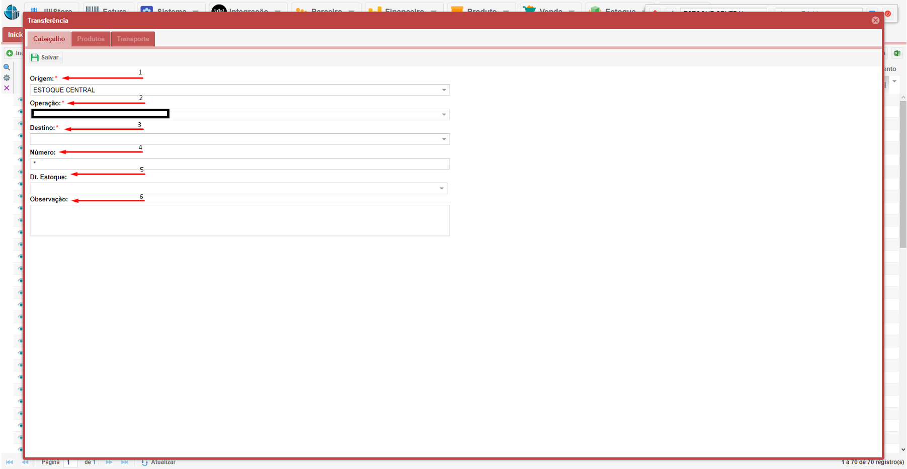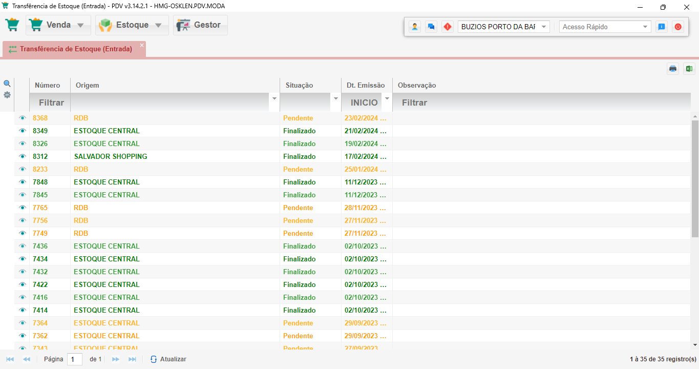 • Operação: Tipo de operação (ex: Transferência entre lojas).