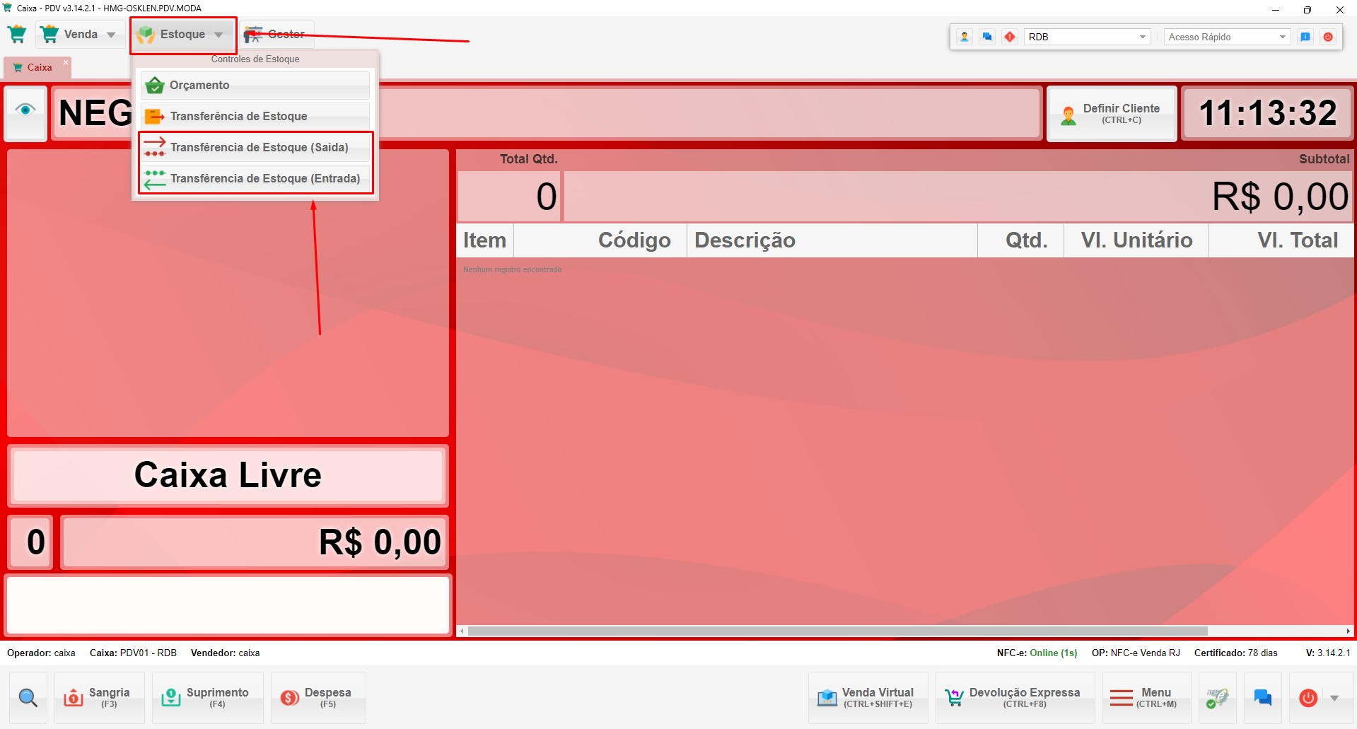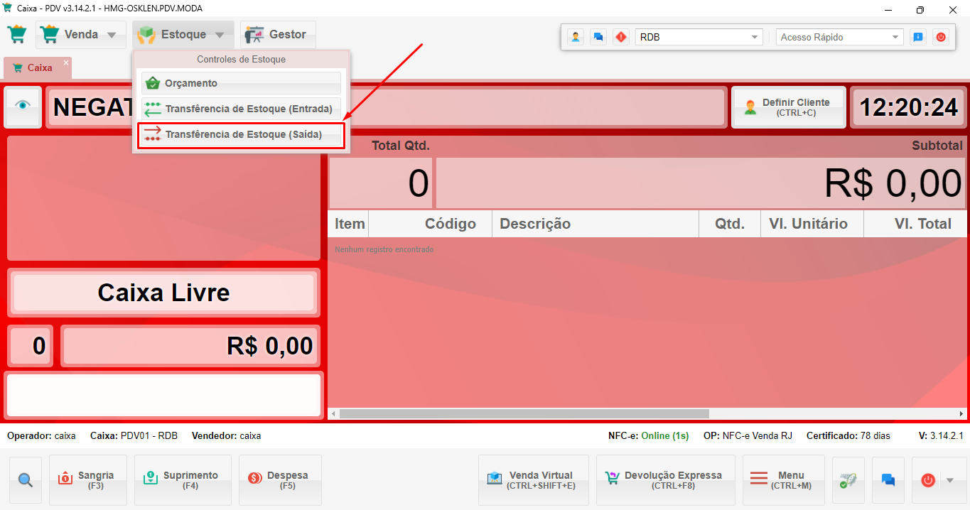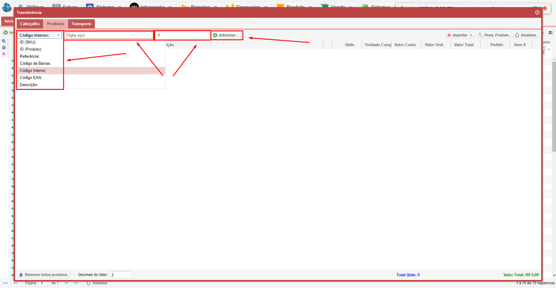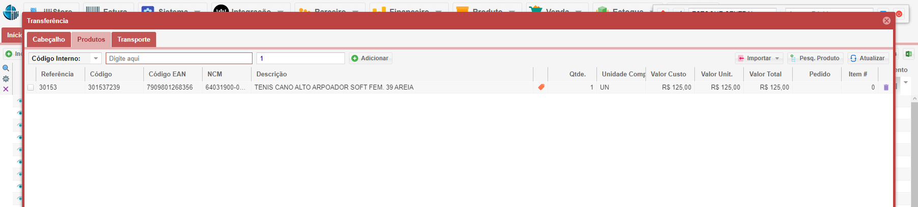 • Transferência de Estoque (Saída): Utilizada quando a mercadoria vai sair da sua loja.