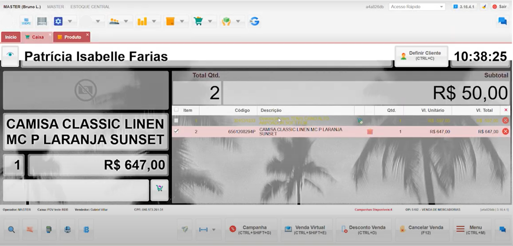 Se o produto da devolução tiver um valor superior, podemos usar o atalho Ctrl + P para alterar o preço. Dessa forma, o valor do novo produto será ajustado para corresponder ao item devolvido.