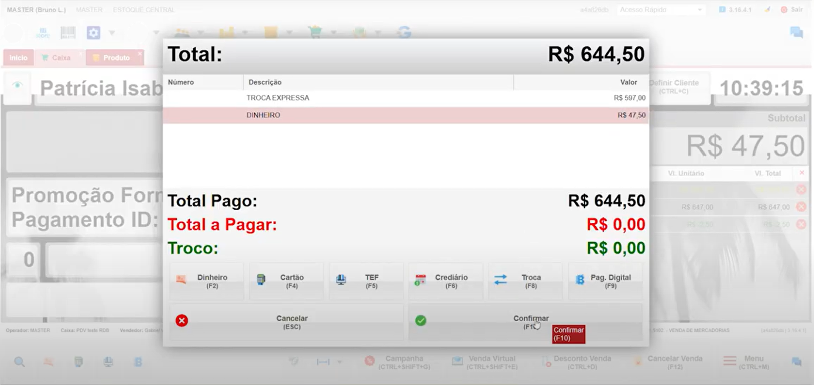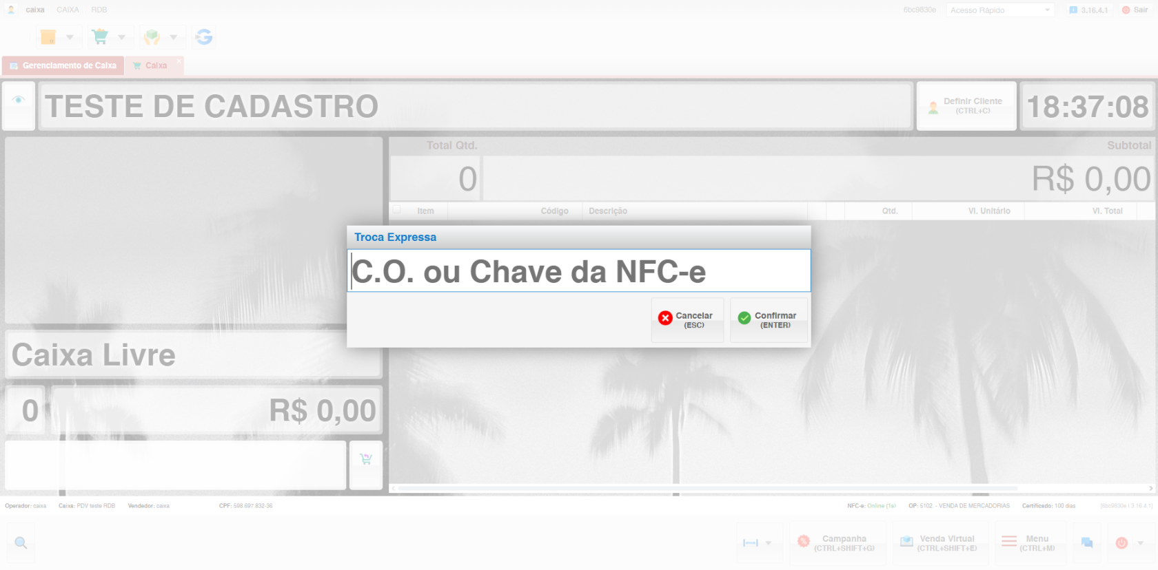 Desativação da Troca: Certifique-se de que o botão de "Troca Expressa" na interface do PDV está desmarcado, retornando ao modo normal.