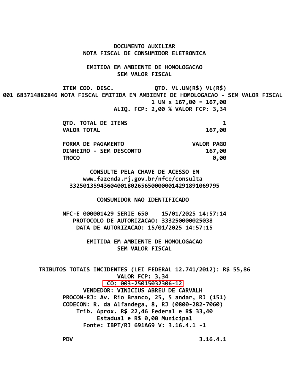 Observação: Caso não tenha um C.O, basta pressionar Enter para prosseguir com o processo de devolução.