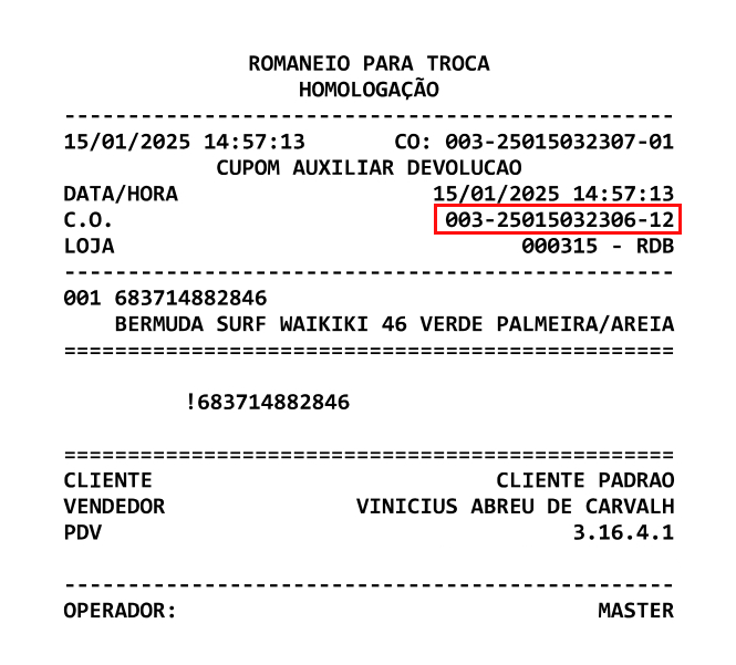 Incluir o produto devolvido: A loja registra no sistema o C.O. (cupom fiscal) e o item a ser devolvido.