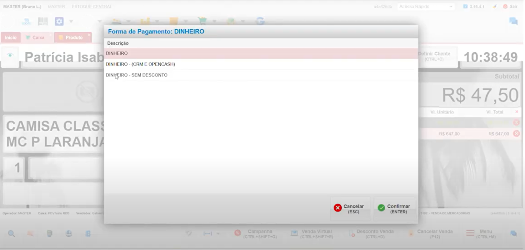- Ao finalizar a venda, selecione a forma de pagamento como "Dinheiro".