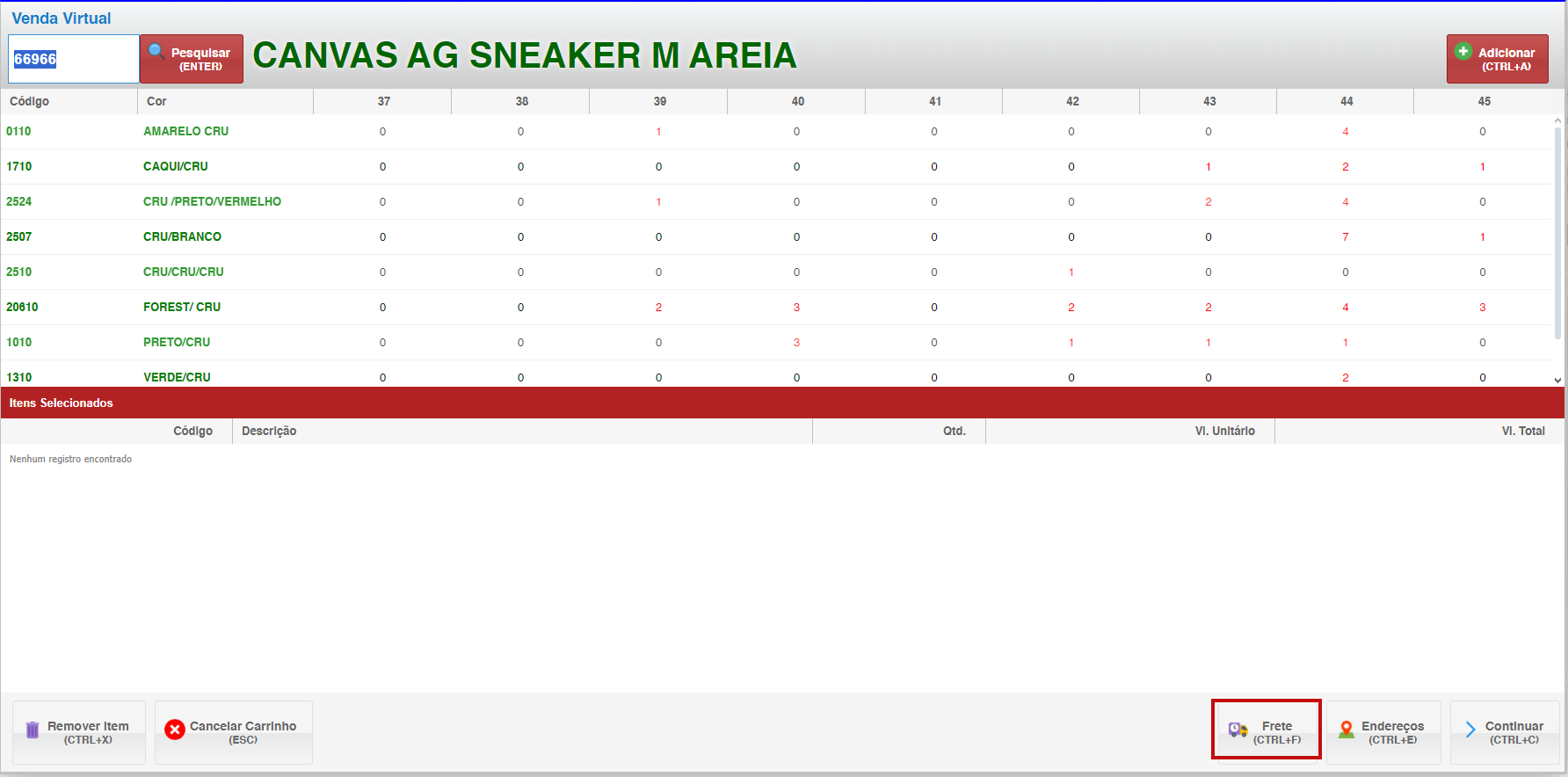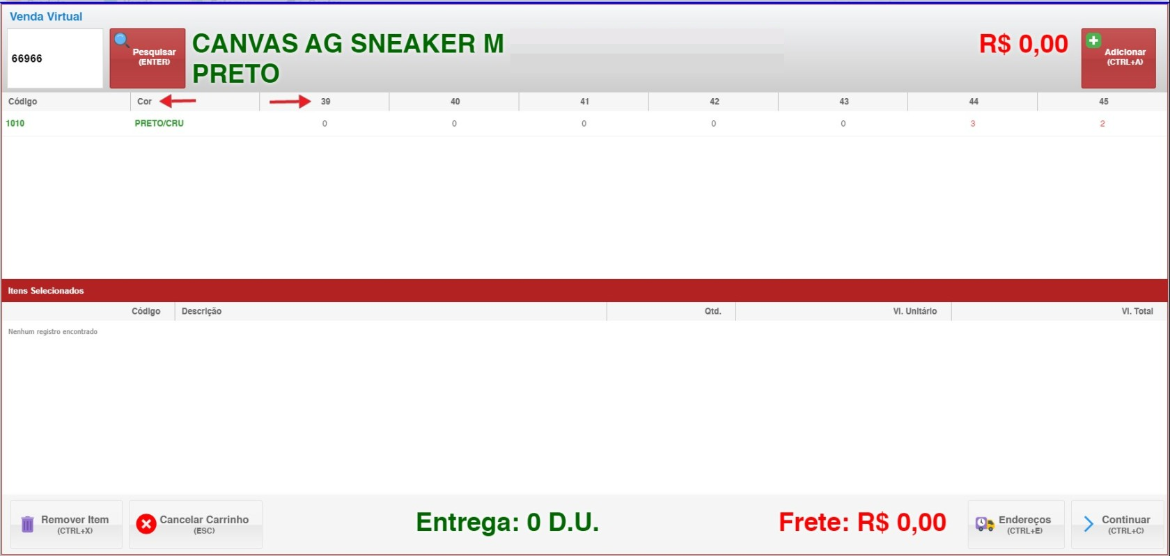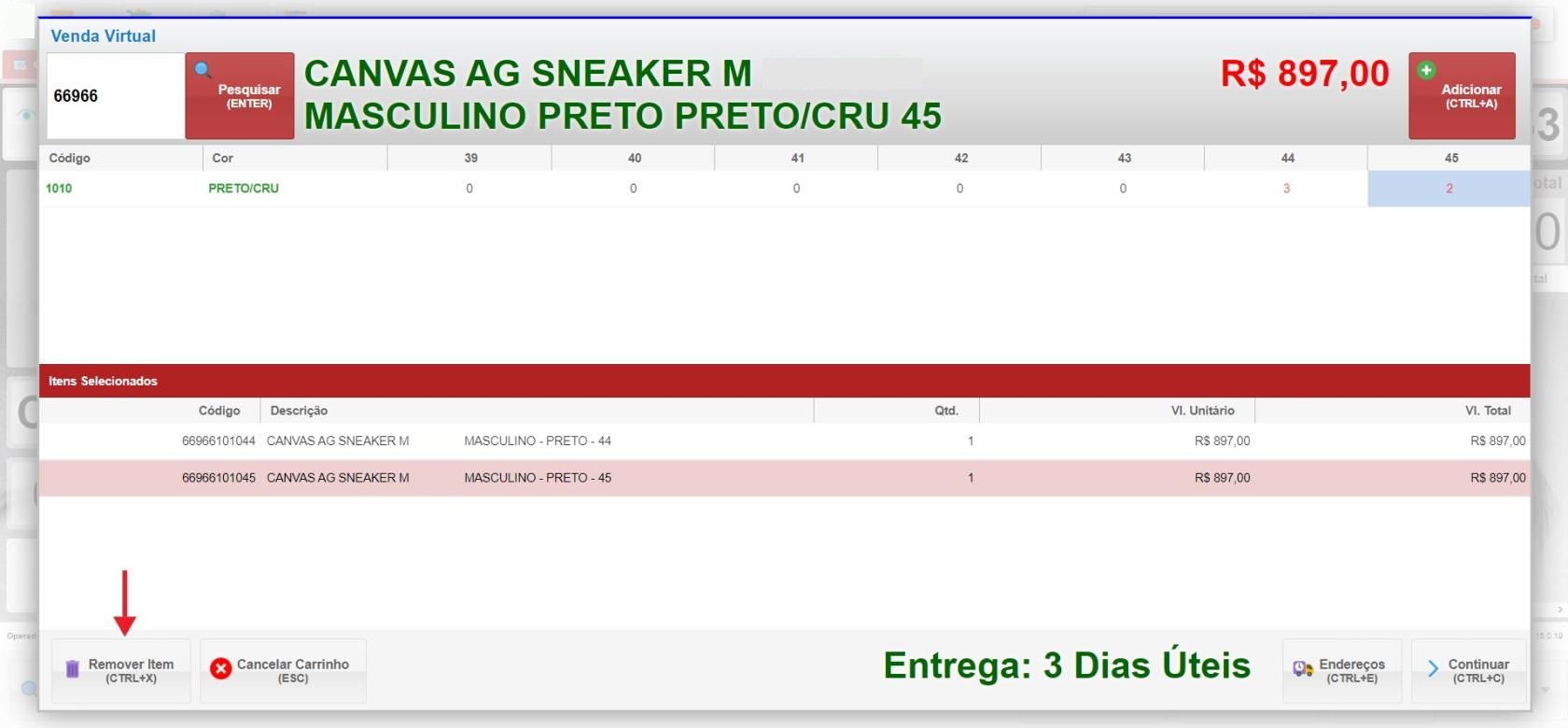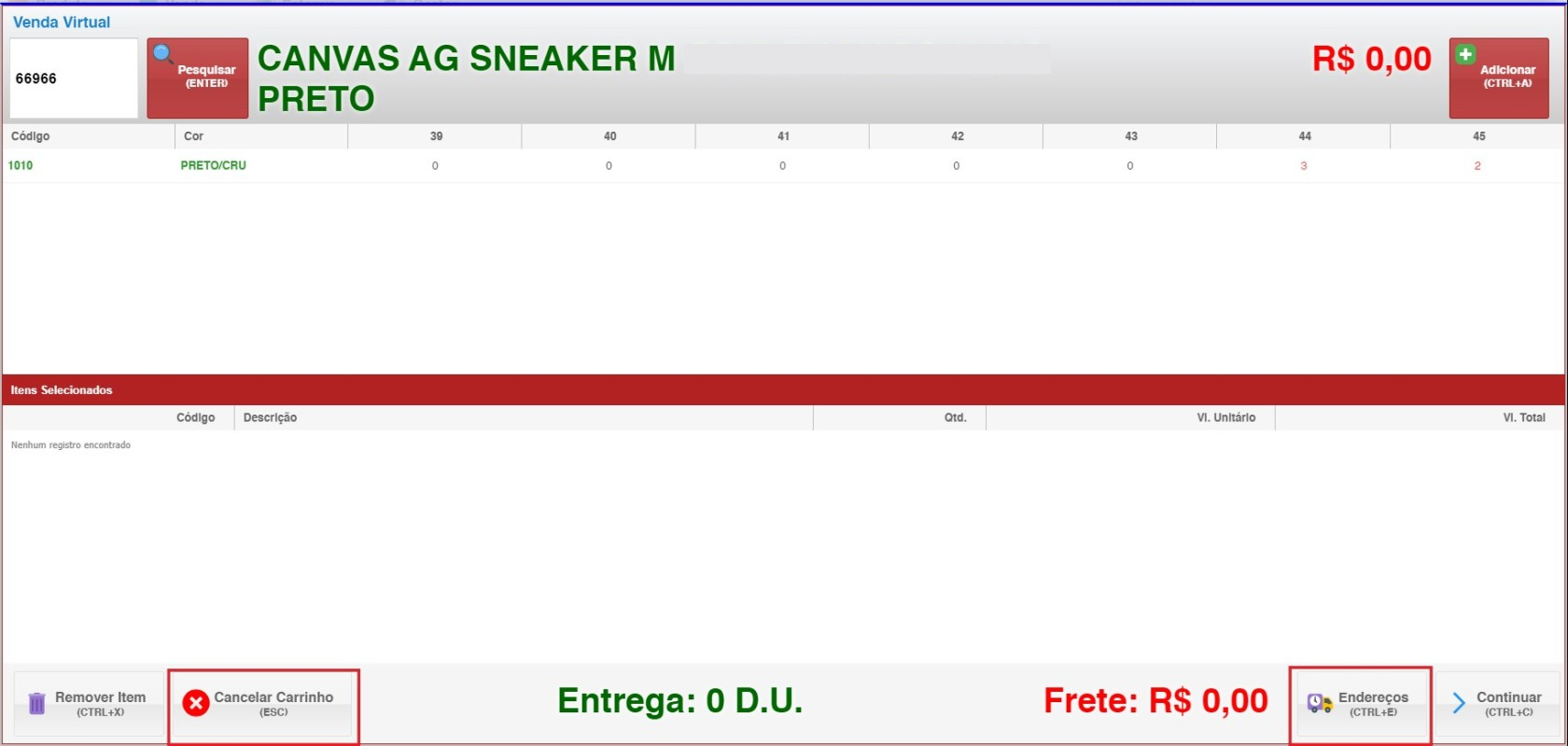 - Para remover itens do carrinho, use o atalho CTRL+X ou cancele todo o carrinho.