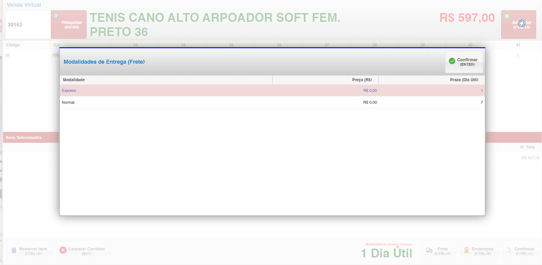 - Depois, você precisa escolher como será a entrega: expressa ou normal.
