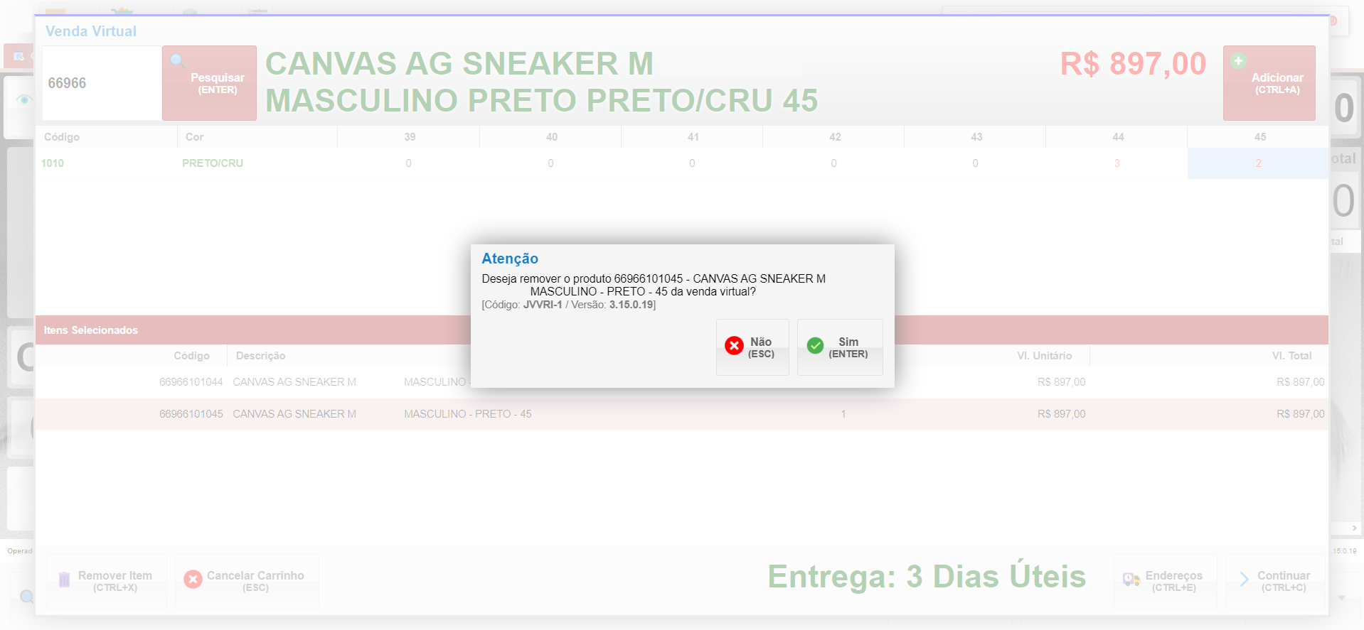 - Para excluir itens da venda vitrine, você precisa ir ao menu de venda virtual e excluí-los lá; não é possível fazer isso diretamente pelo PDV.