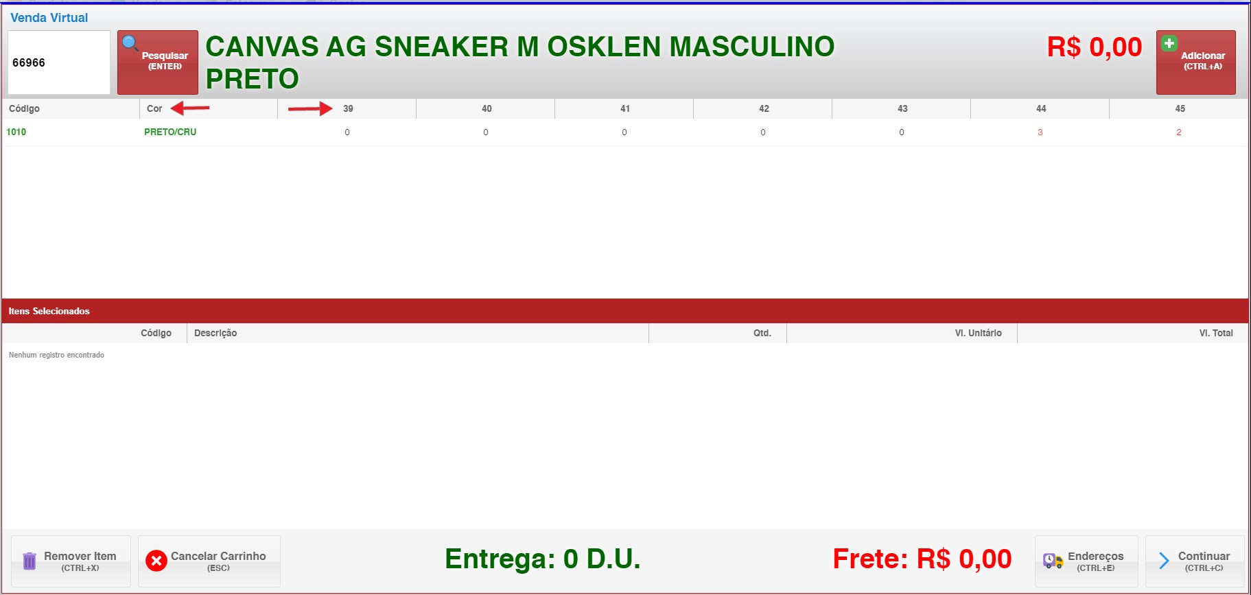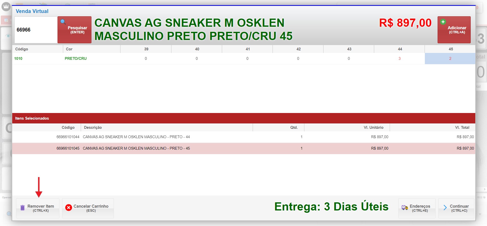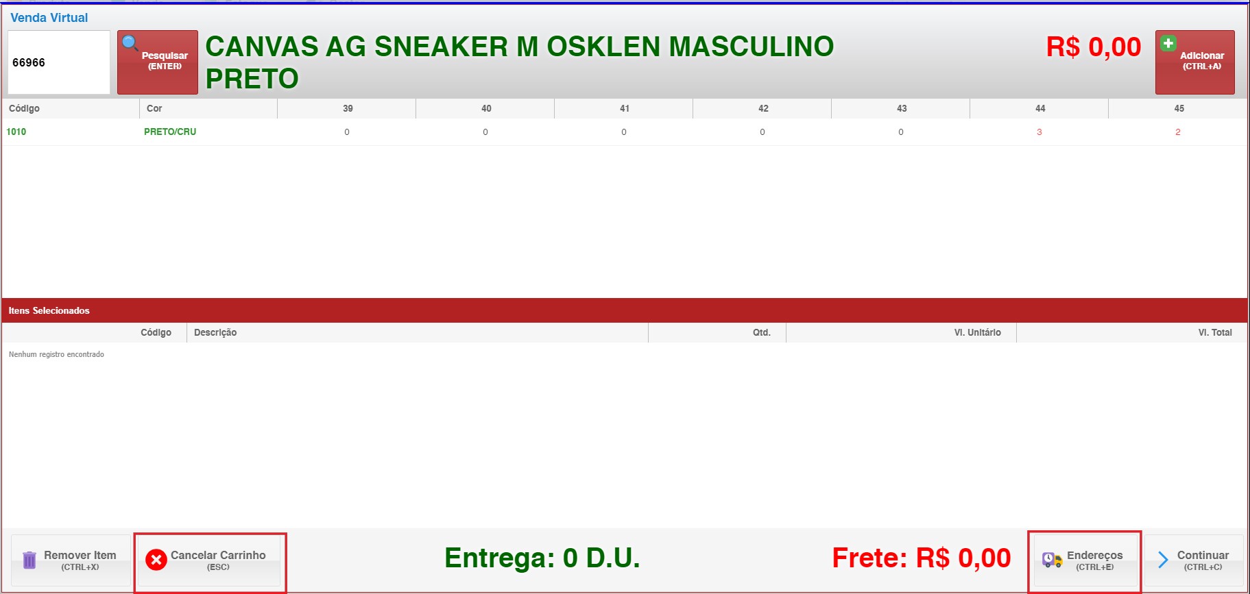 - Para remover itens do carrinho, use o atalho CTRL+X ou cancele todo o carrinho.