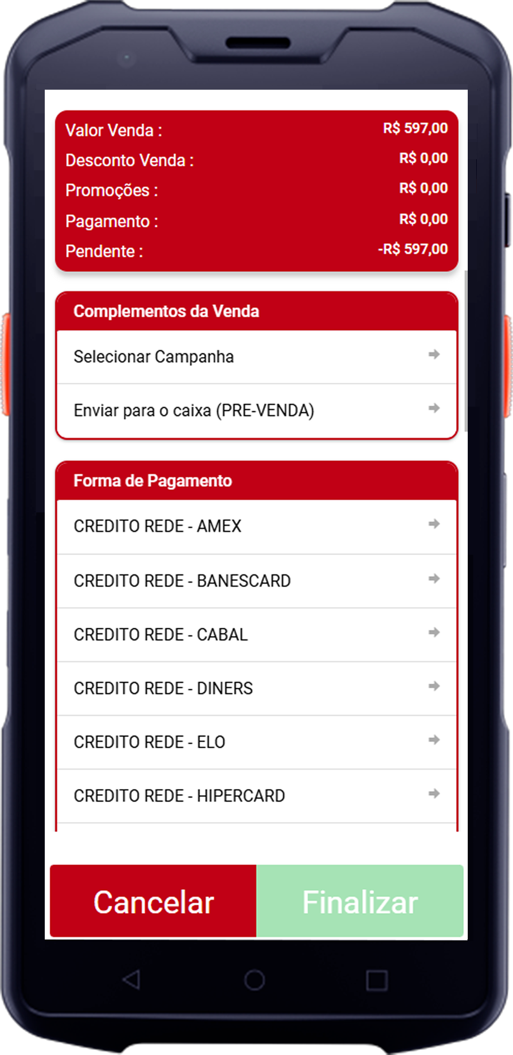 - Cancelar Venda: Opção para interromper e cancelar a venda em andamento.
