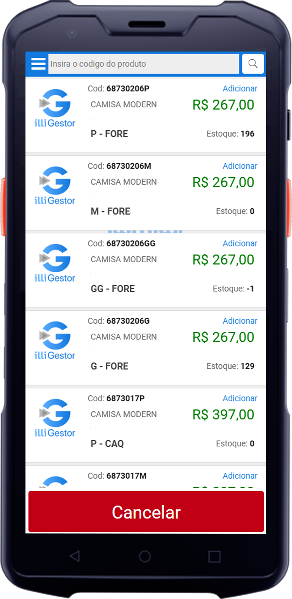 - Consultar Produto: Pesquisa itens pelo código ou descrição.