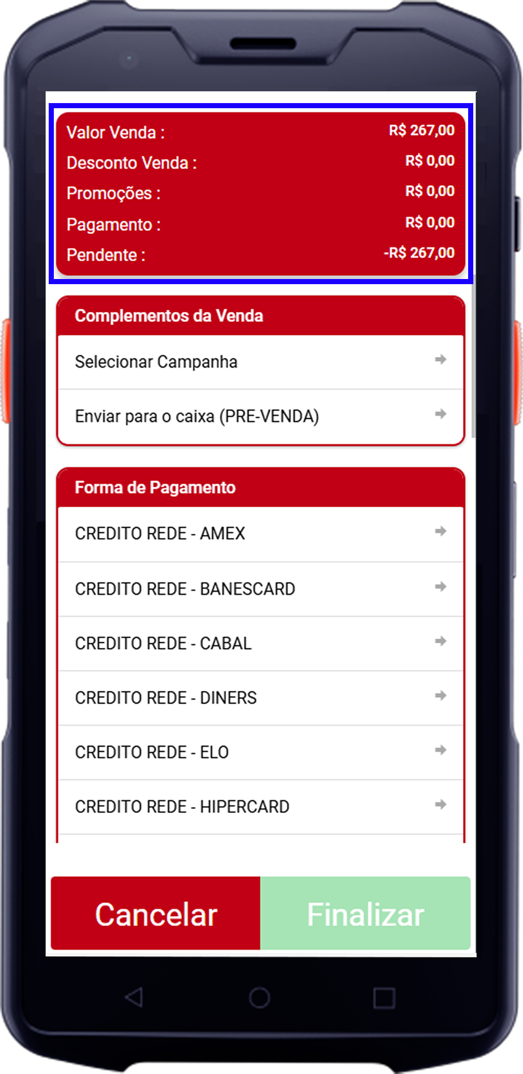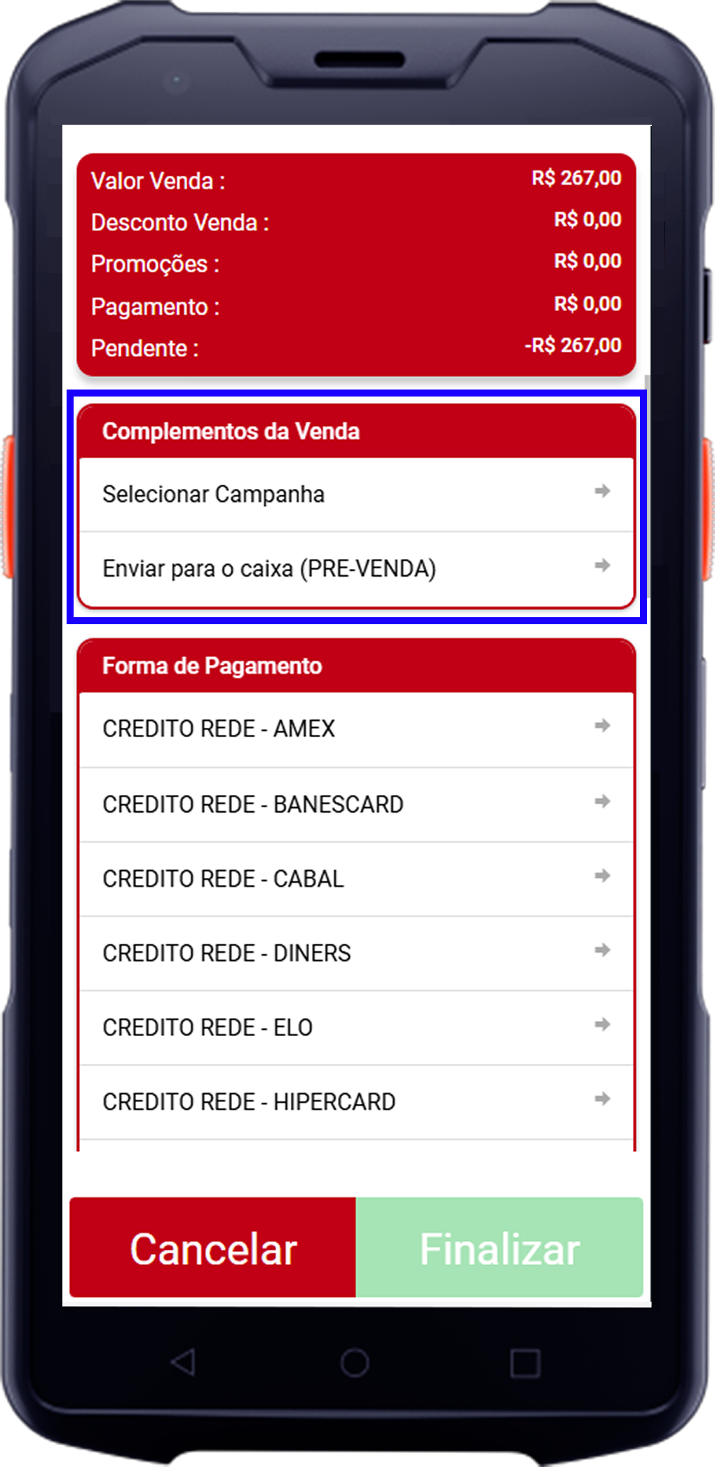 - Enviar para o caixa (PRE-VENDA): Alternativa para salvar a venda para finalização posterior.