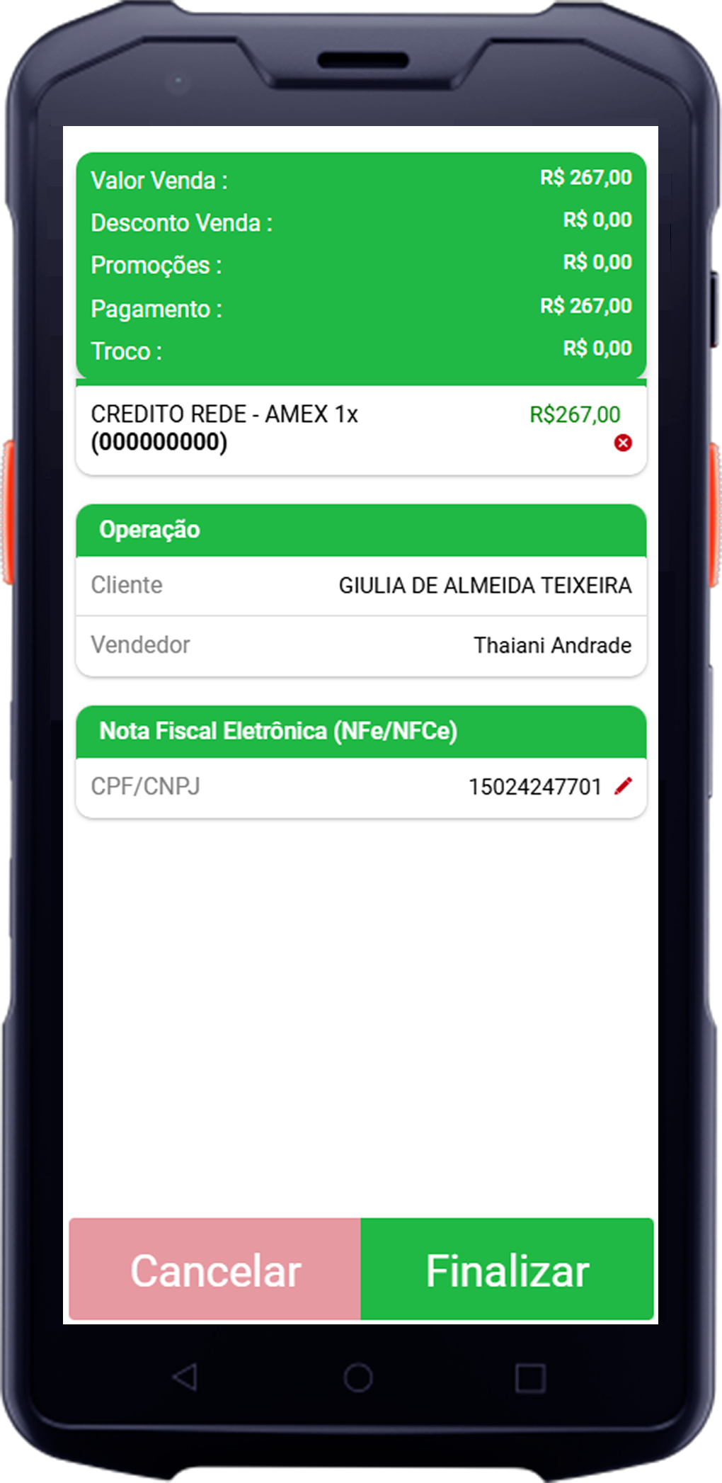 - Alterar Vendedor: Permite trocar o vendedor responsável pela transação, caso necessário.