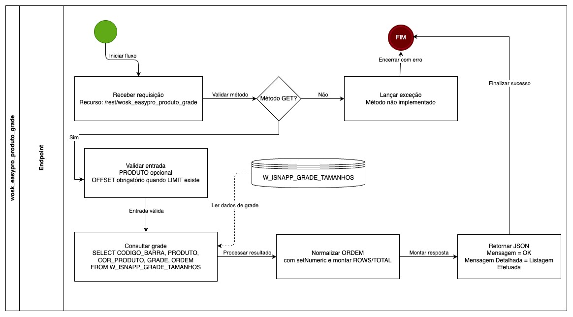 | 30/03/2026 | 1.0 | Maykon/Gustavo | Criação da documentação técnica do serviço de consulta de grade de produto EasyPro. |