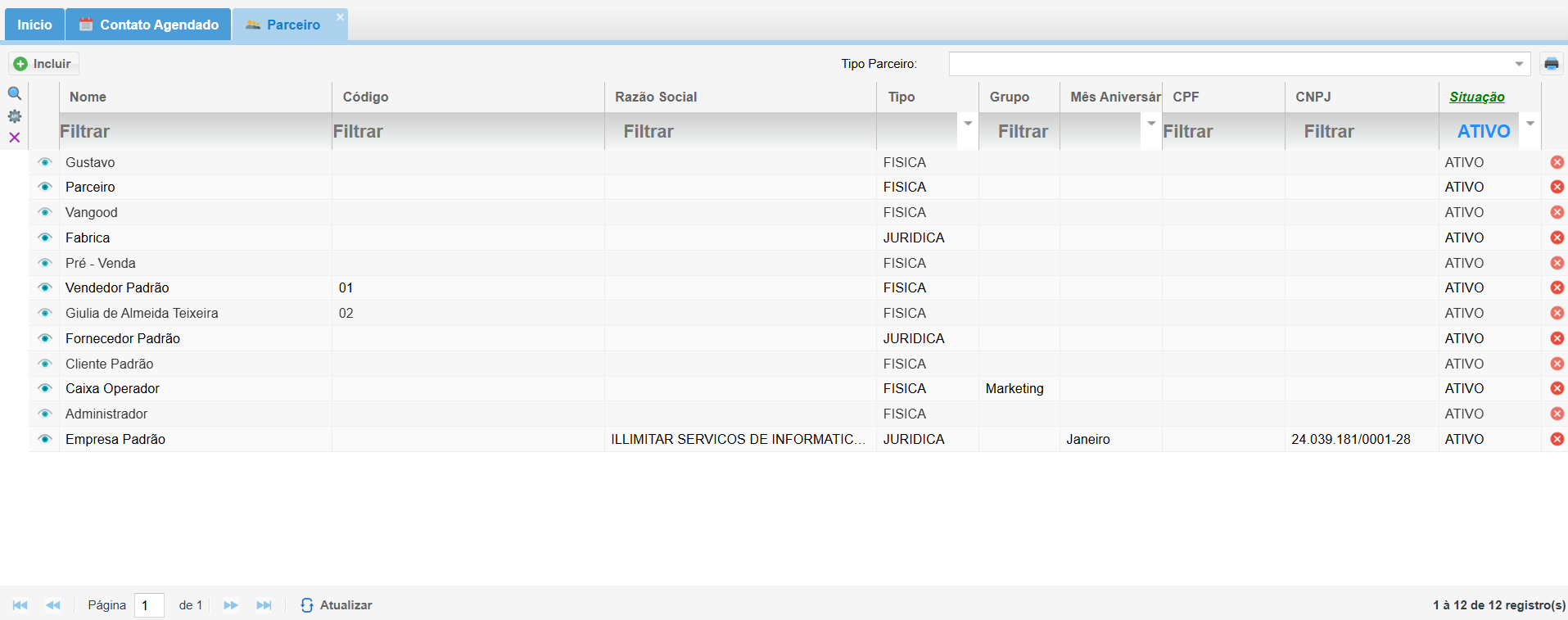 - Acesse o Perfil: Clique duas vezes sobre o nome do parceiro na lista. Esta ação abrirá uma nova tela, exibindo o perfil completo do parceiro com todas as suas informações associadas.