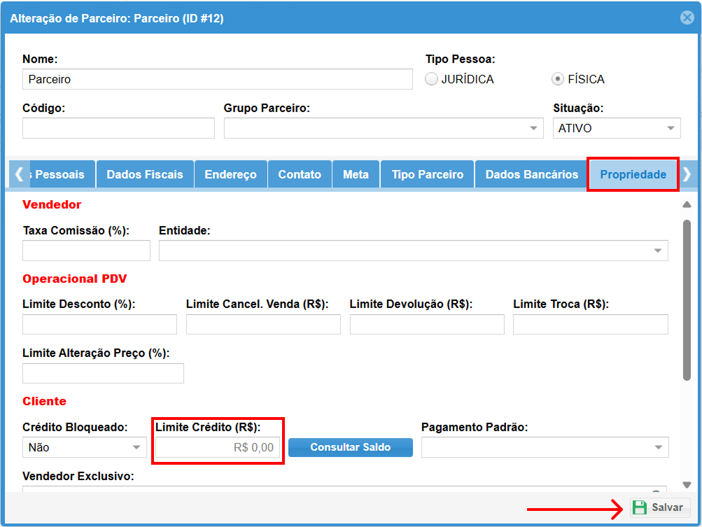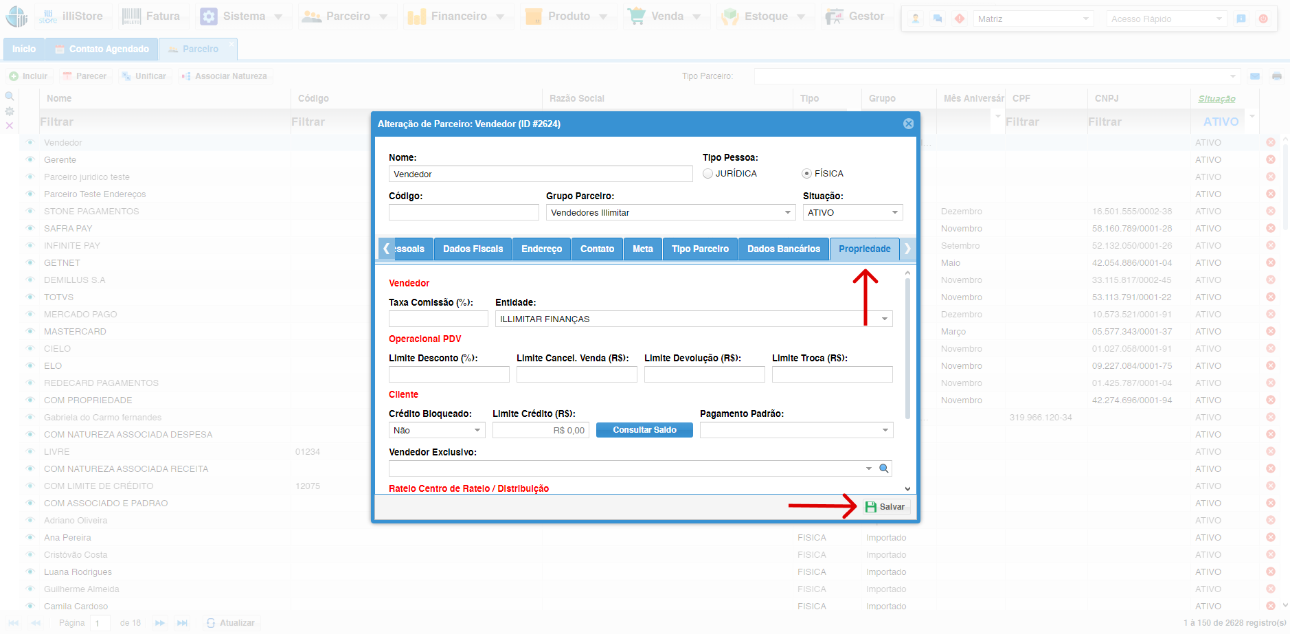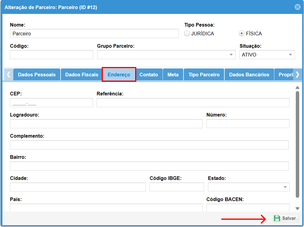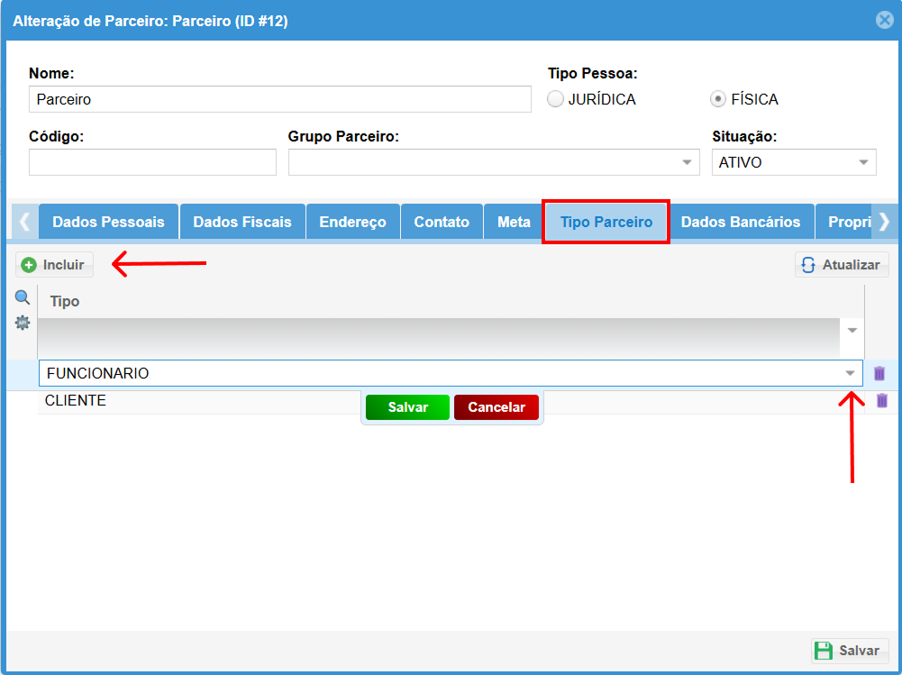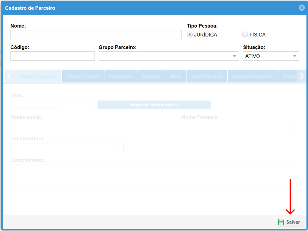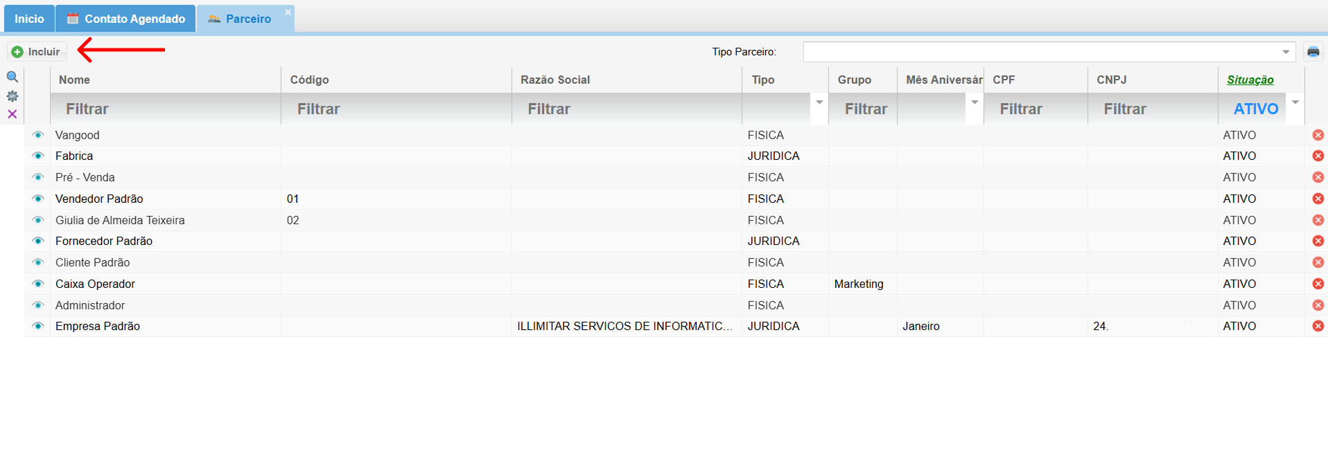 - Clique no botão Incluir: Você será direcionado para a tela de cadastro de novos parceiros.