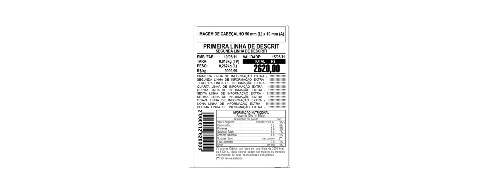 - Informações Nutricionais: Define algumas informações nutricionais do produto (limitado a 50 caracteres para aparecer na etiqueta).