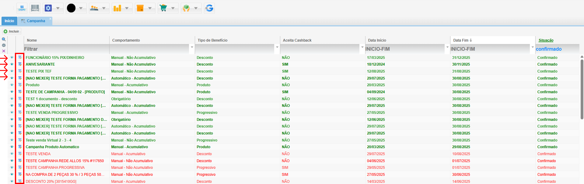 - Data Início e Data Fim: Define o período de vigência da campanha.