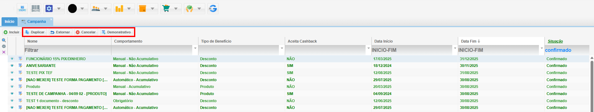 - Estorno de Campanha: Reverta uma campanha que já foi aplicada.
