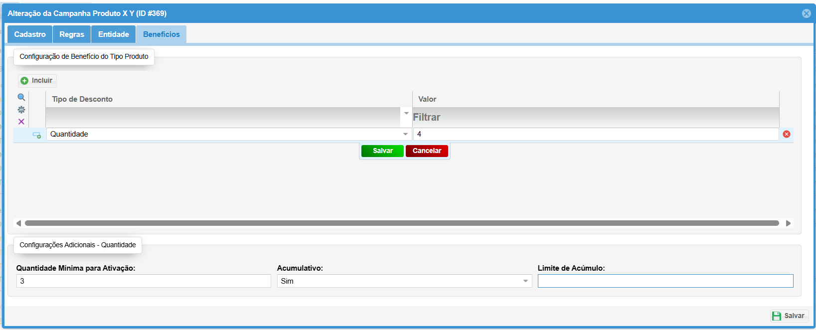 Quantidade de Produtos: Estabelece limite de itens que receberão o benefício.