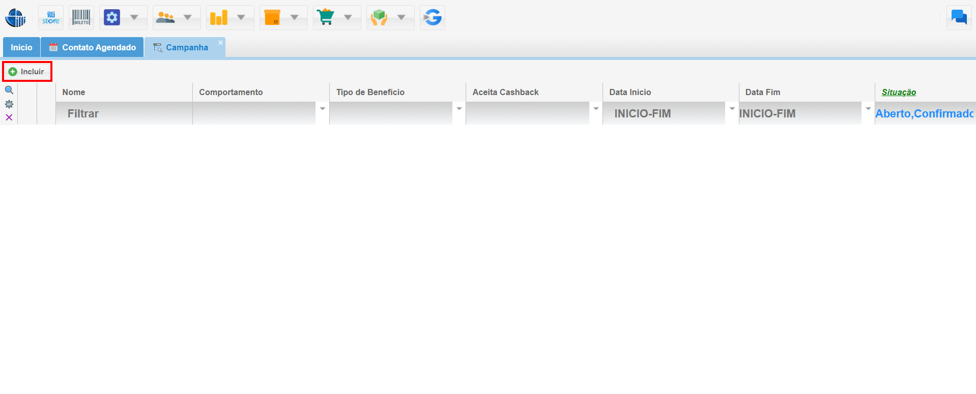 - Para iniciarmos a nossa campanha, clique em Incluir.
