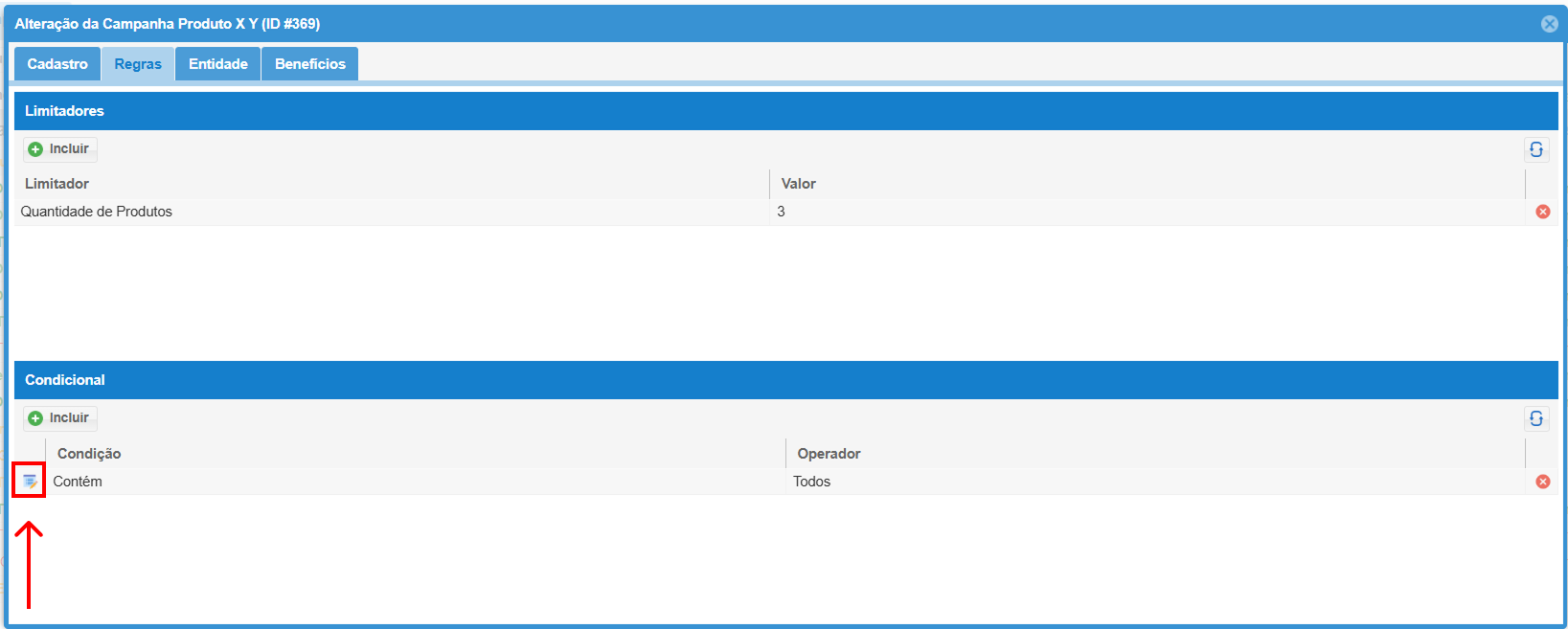 - Ao Salvar a condicional, clique no editar (livrinho)