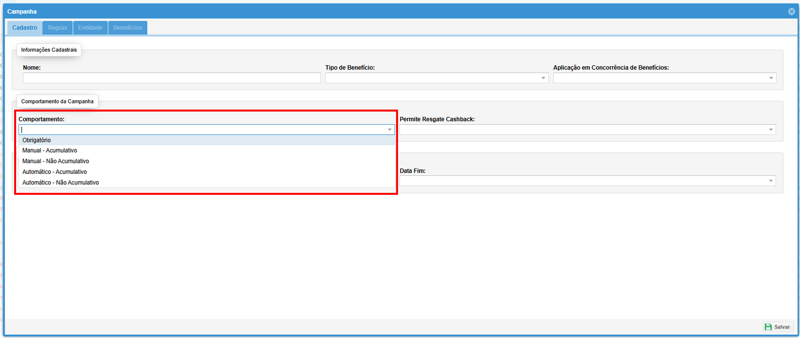 - Permite Regate Cashbak: Define se a campanha permite o resgate de cashback (valor que volta para o cliente).