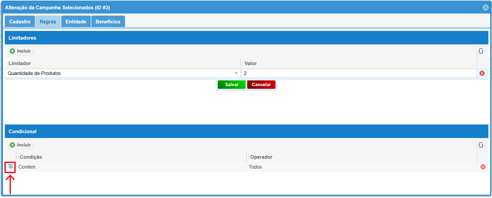 - Ao Salvar a condicional, clique no editar (livrinho).