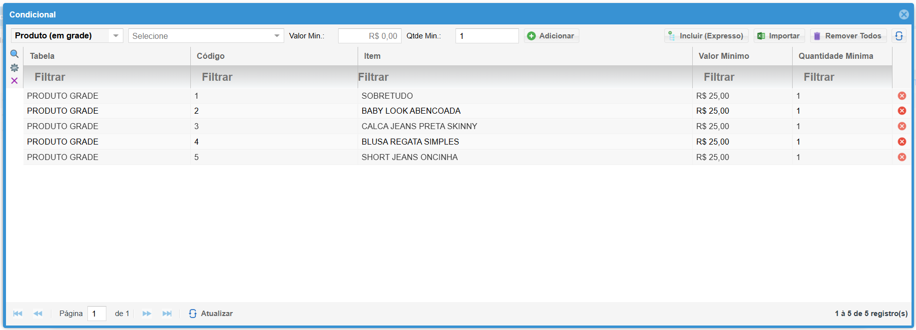 Valor Mínimo de Venda: Estabelece valor mínimo de compra para ativar a promoção.