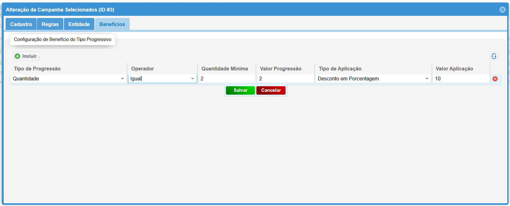 Esse documento visa criar um passo a passo sobre a criação de uma campanha do Tipo de Benefício "Progessivo".