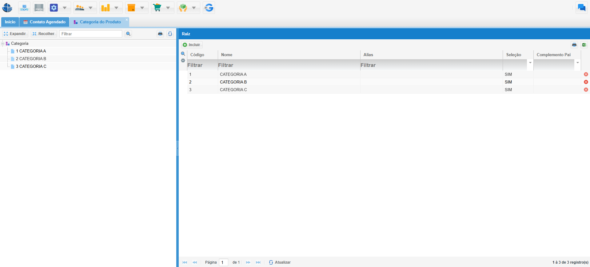 A tela do módulo Categoria de Produto é dividida em duas seções: