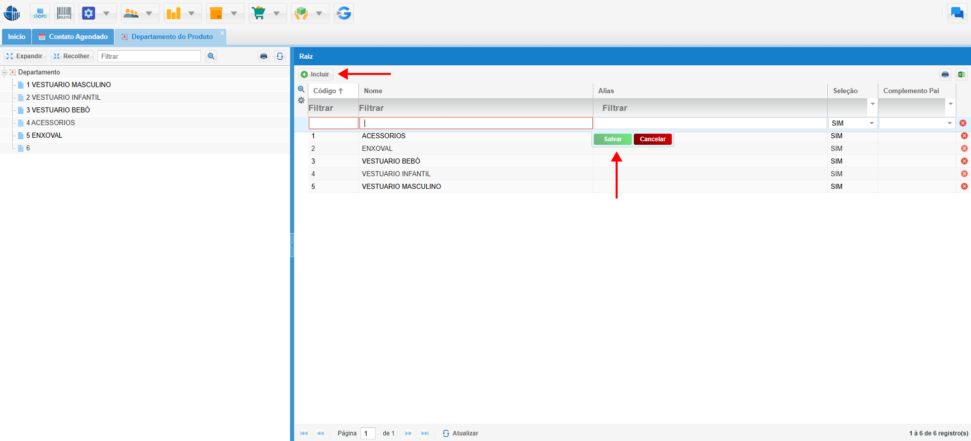 Através desse módulo, é possível criar mais características para cadastrar e segmentar os produtos em Departamentos.