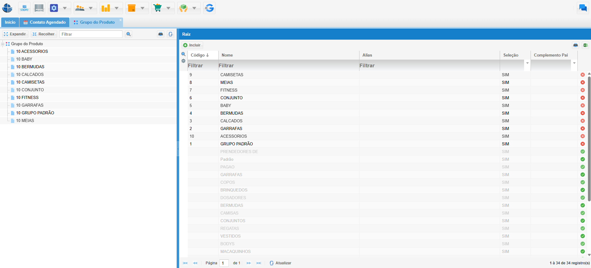 - Você pode expandir e contrair categorias para ver subgrupos e produtos associados, facilitando a localização.