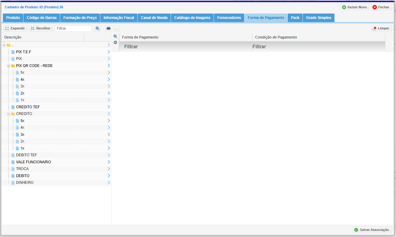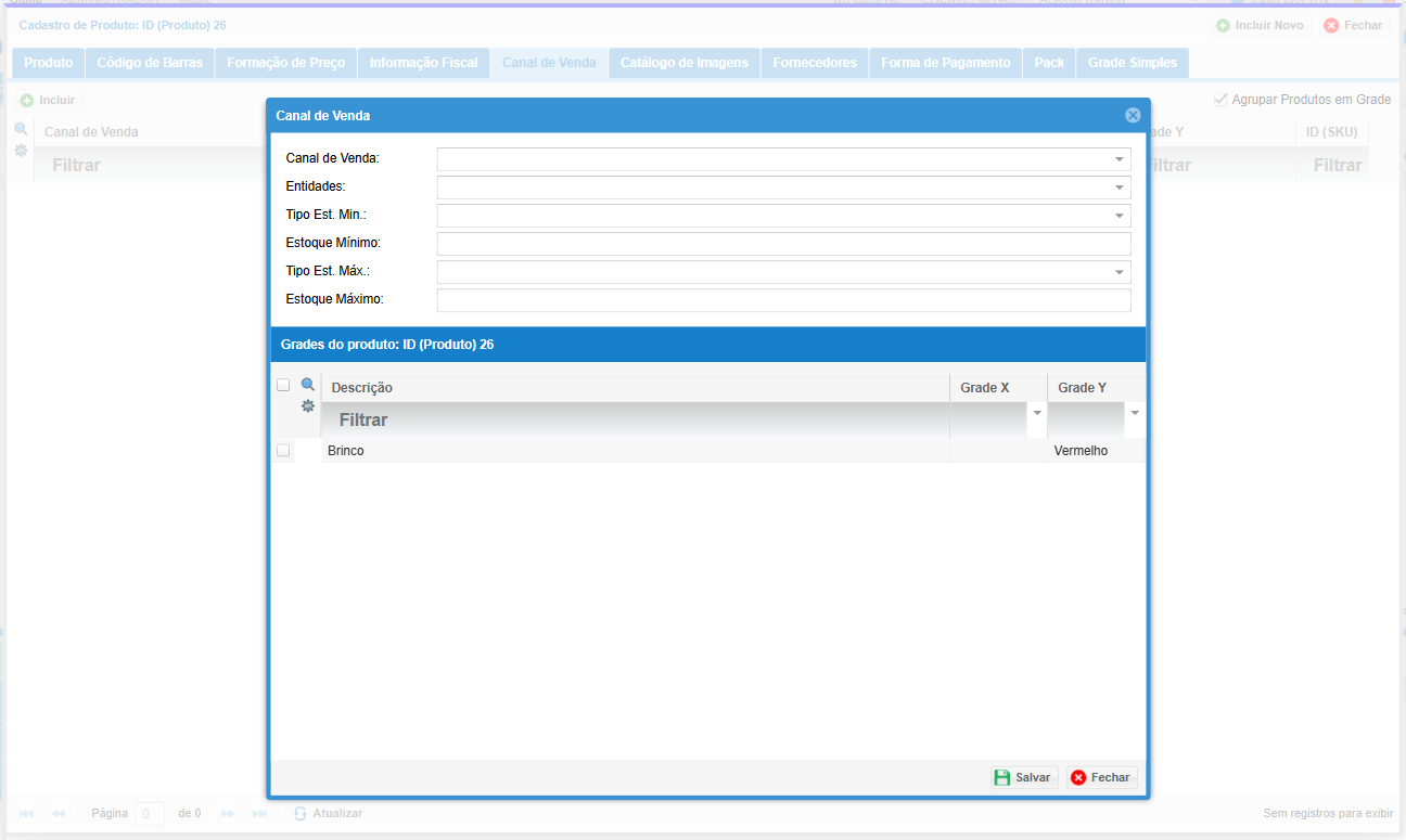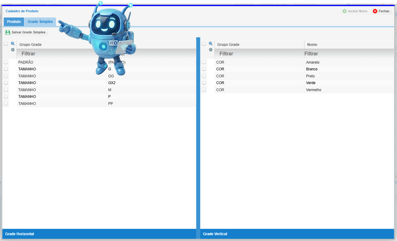 • Esta aba só aparece se o tipo do produto for "Grade Simples".