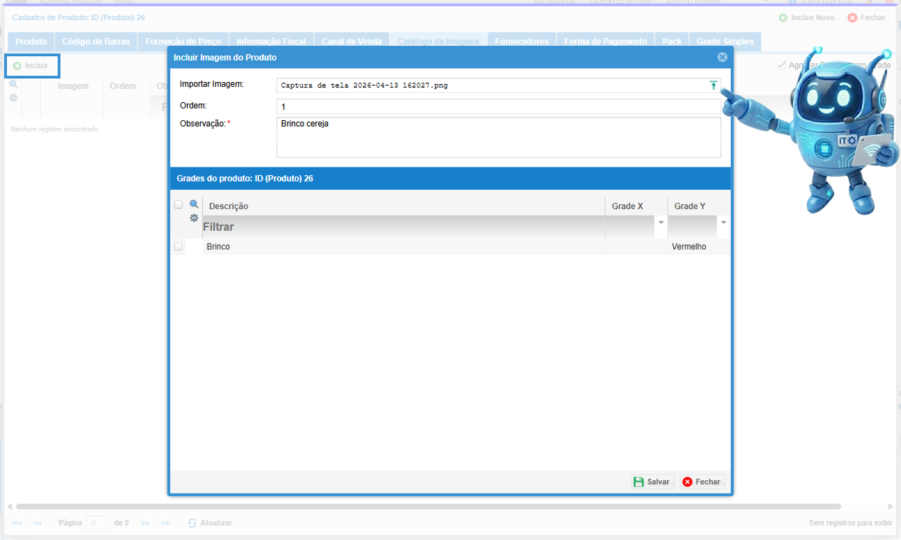 • Complemento: Aqui você adiciona informações extras que não estão na tela principal, como códigos de barras adicionais, detalhes de fornecedores e fotos.