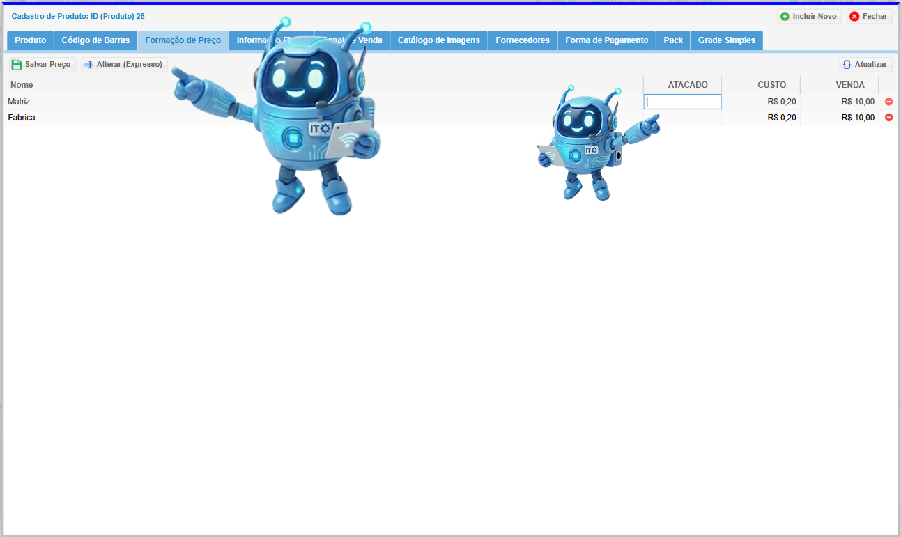 • Formação de Preço: Abre a tela para você ajustar o custo, a margem de lucro e o preço de venda do item selecionado.