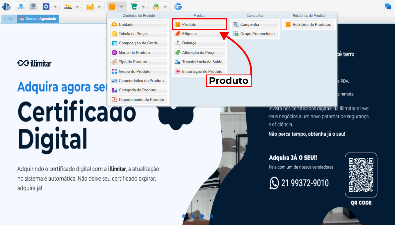 • No menu que aparecerá, selecione novamente a opção Produto.