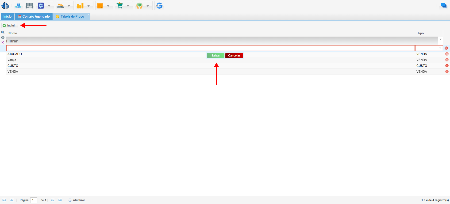 - Tipo: Tipo da tabela de preço (custo ou venda).