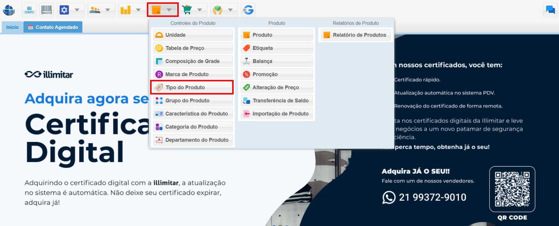 1. Acessando o Módulo Tipo de Produto: