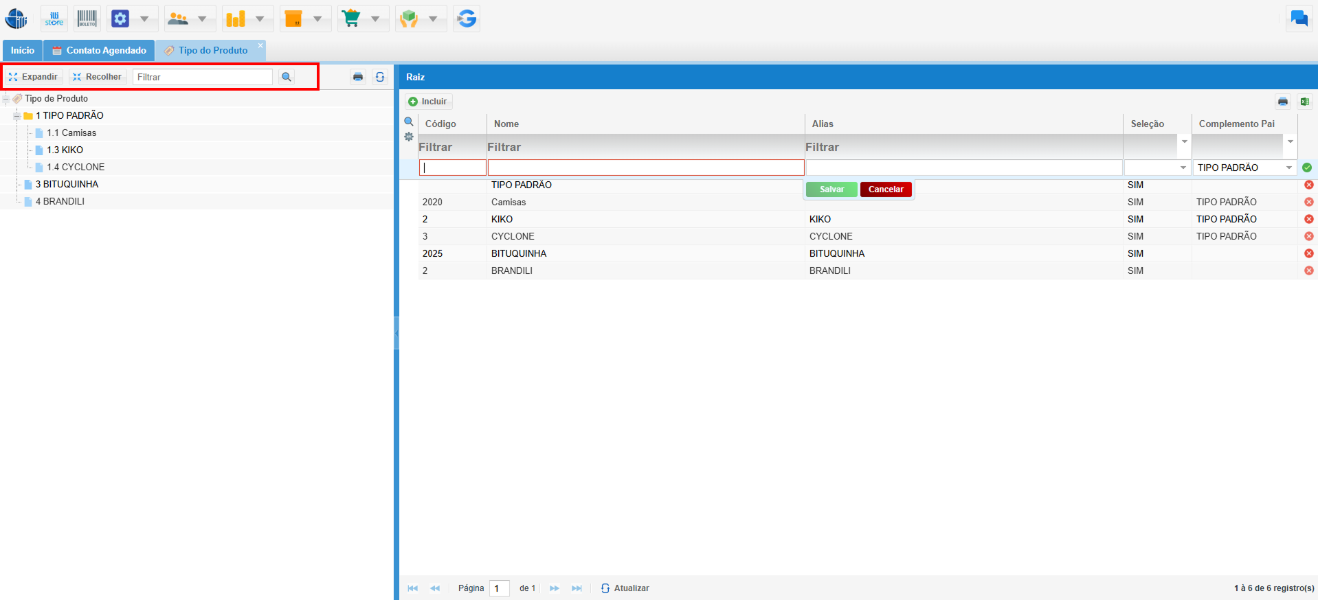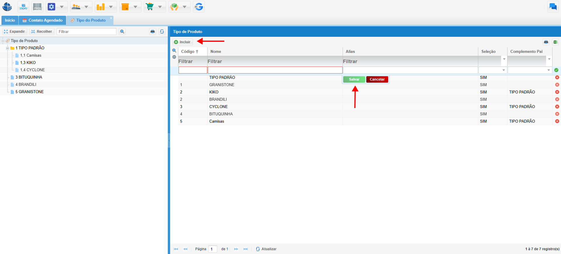 - Clique em Salvar: Para registrar o novo tipo de produto.