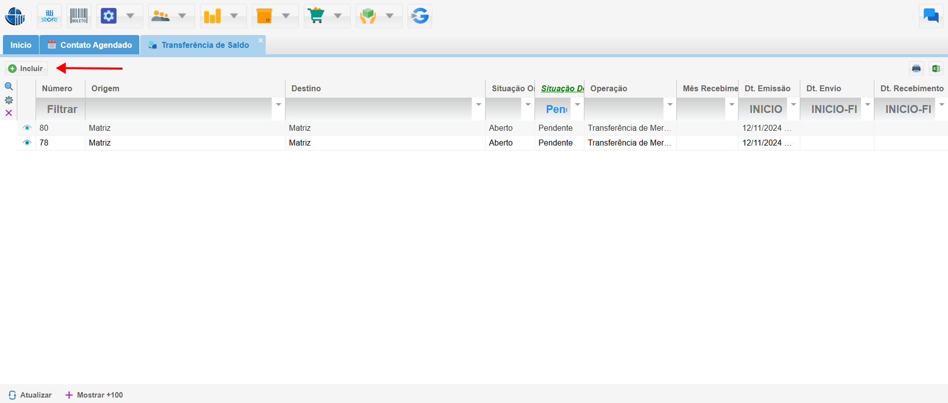 - Clique no botão Incluir para iniciar a criação de uma nova transferência.