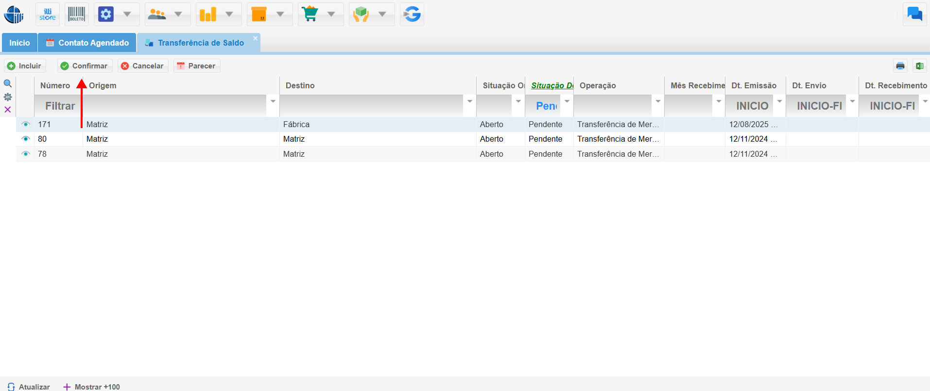 - Seleção: Na lista de transferências, marque a transferência que deseja confirmar.
