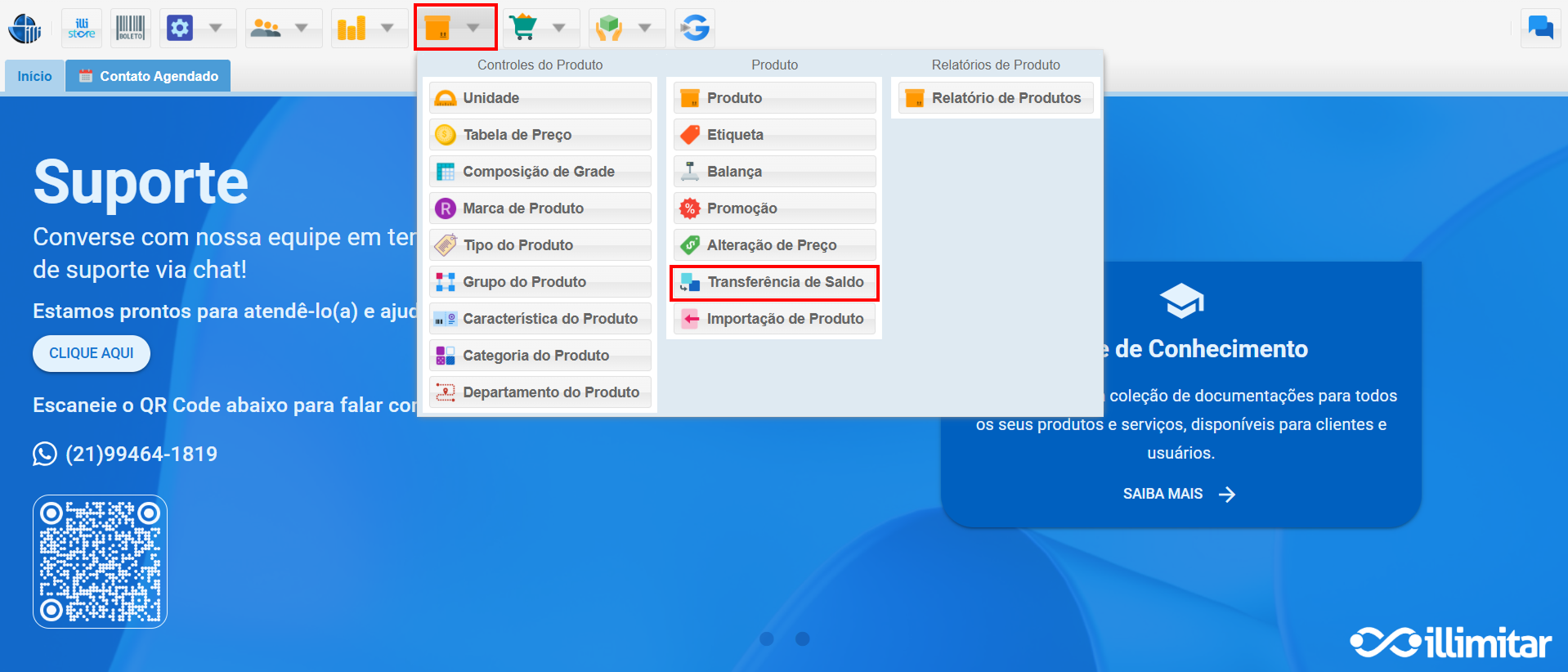 - Código do Produto: Digite o código do produto que terá seu saldo transferido.