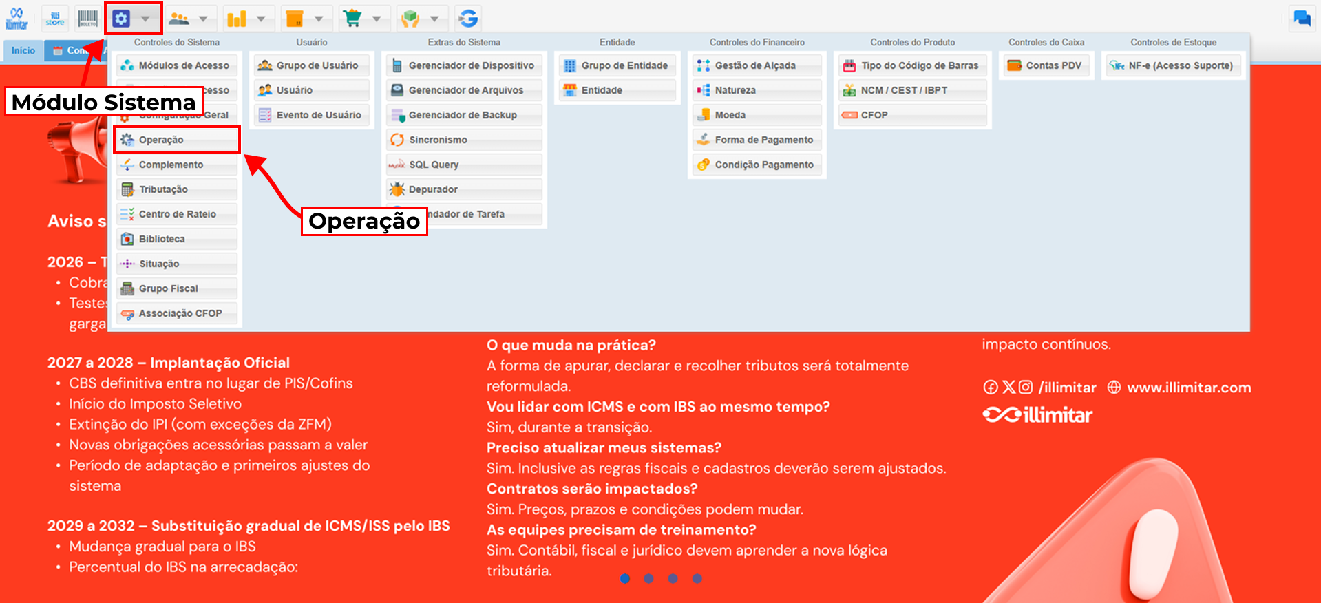 Em conformidade com a Lei Complementar nº 214/2025 e seguindo as diretrizes técnicas da Nota Técnica 2025.002 (v1.30), o sistema illi foi atualizado para atender plenamente à Reforma Tributária.