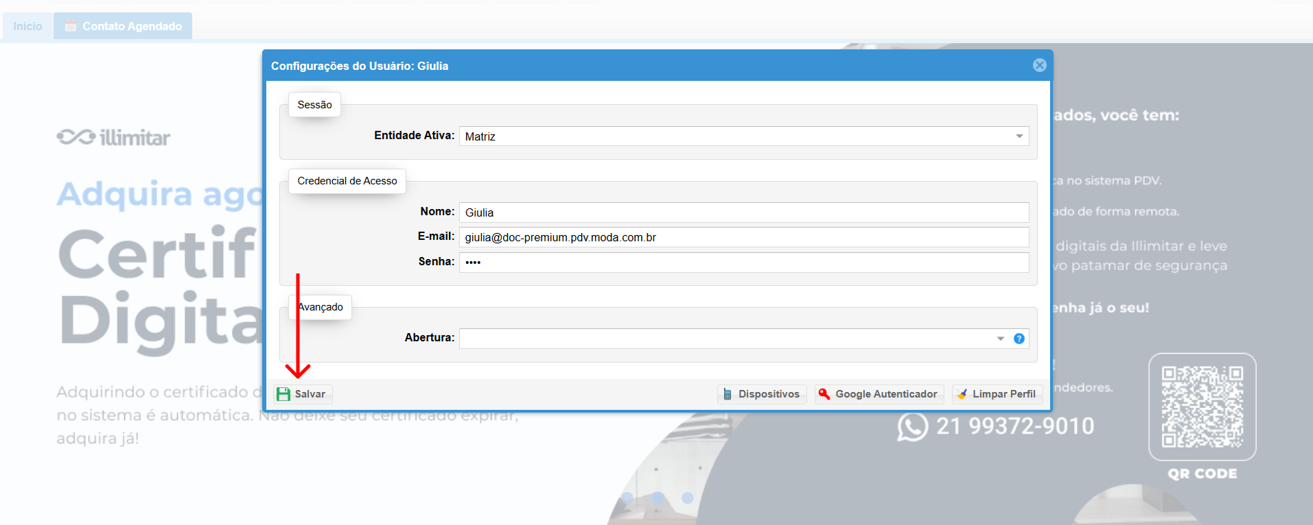 - Clique no botão “Salvar” para confirmar a alteração da senha.