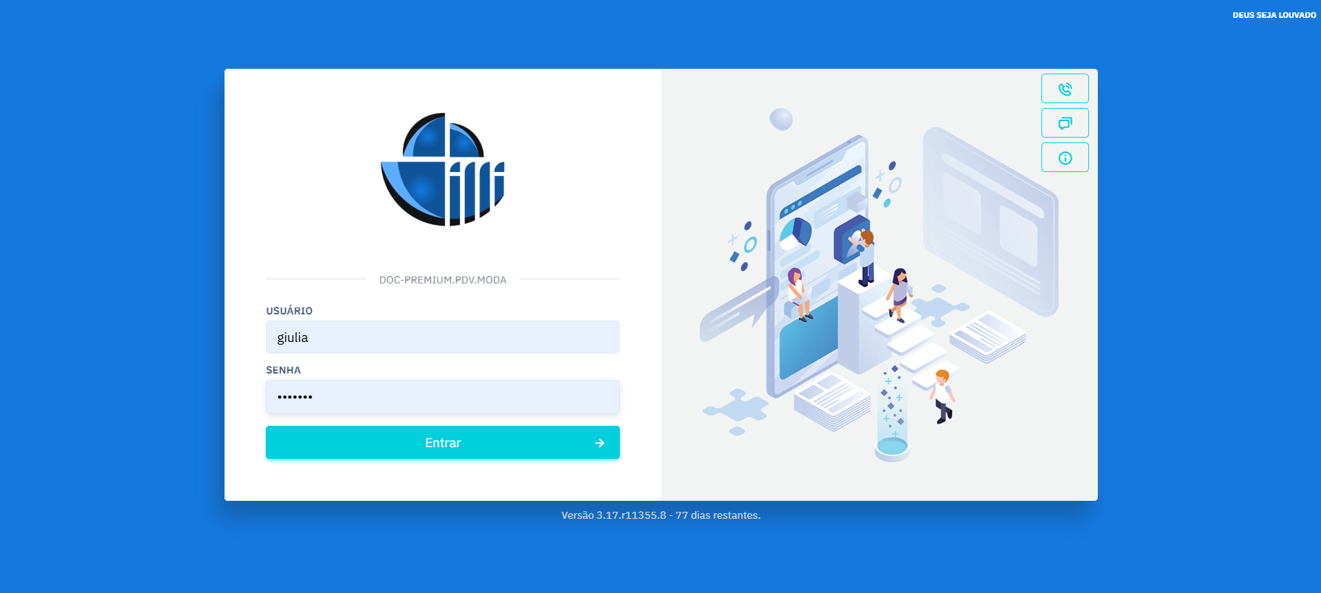 - Após o login, o usuário será direcionado para a tela principal do sistema.
