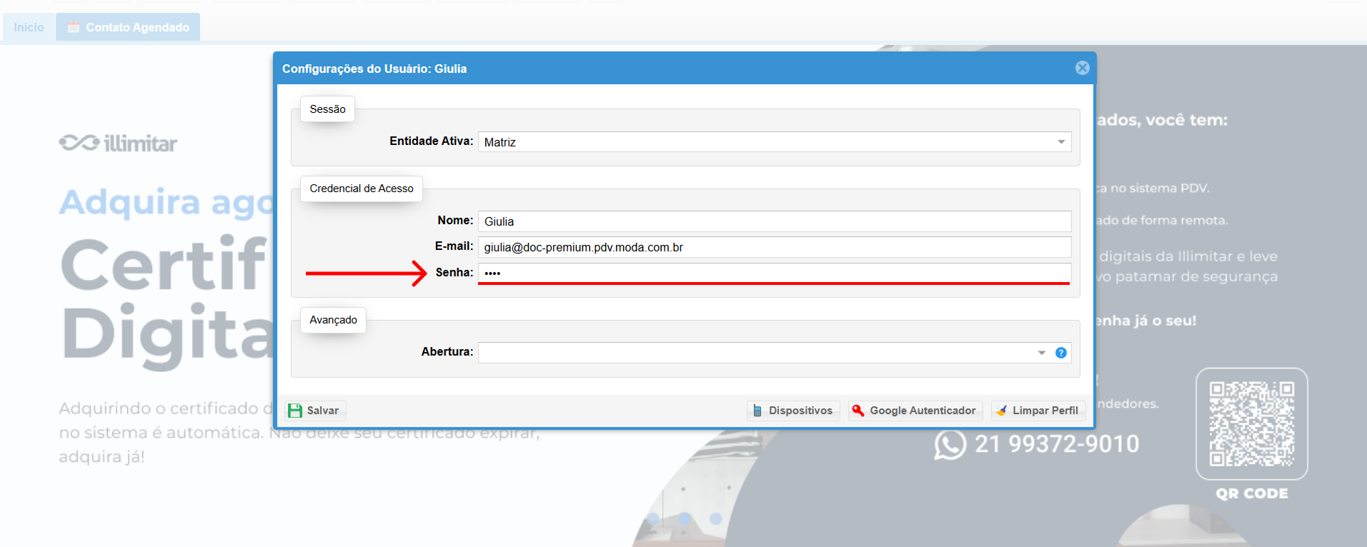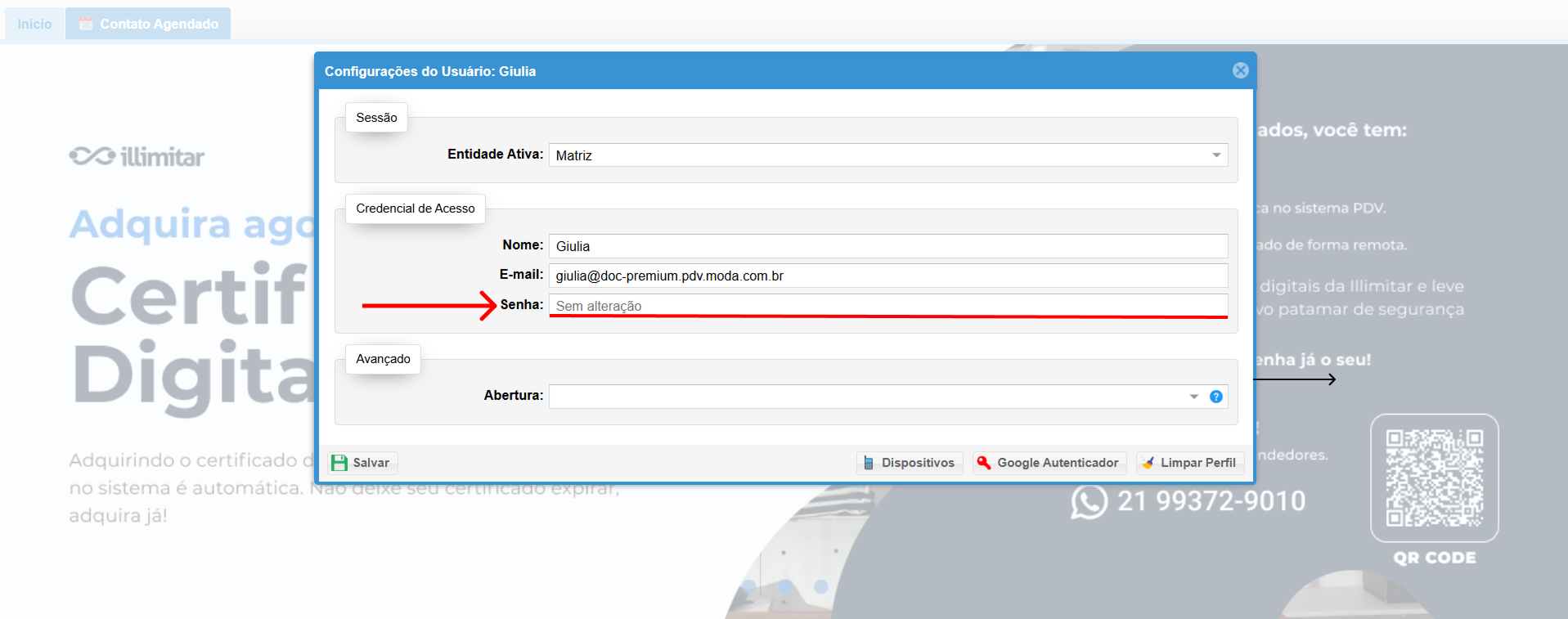 - Para iniciar o processo de alteração de senha, o usuário deve primeiro acessar o sistema, sua retaguarda/nuvem.