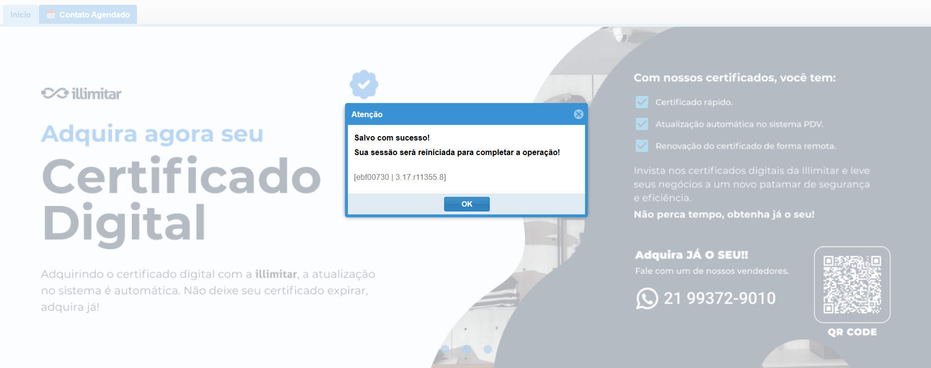 - O sistema irá confirmar a alteração e ao clicar em "OK" a sessão será atualizada e nas próximas vezes que for fazer login, a senha nova já está valendo.